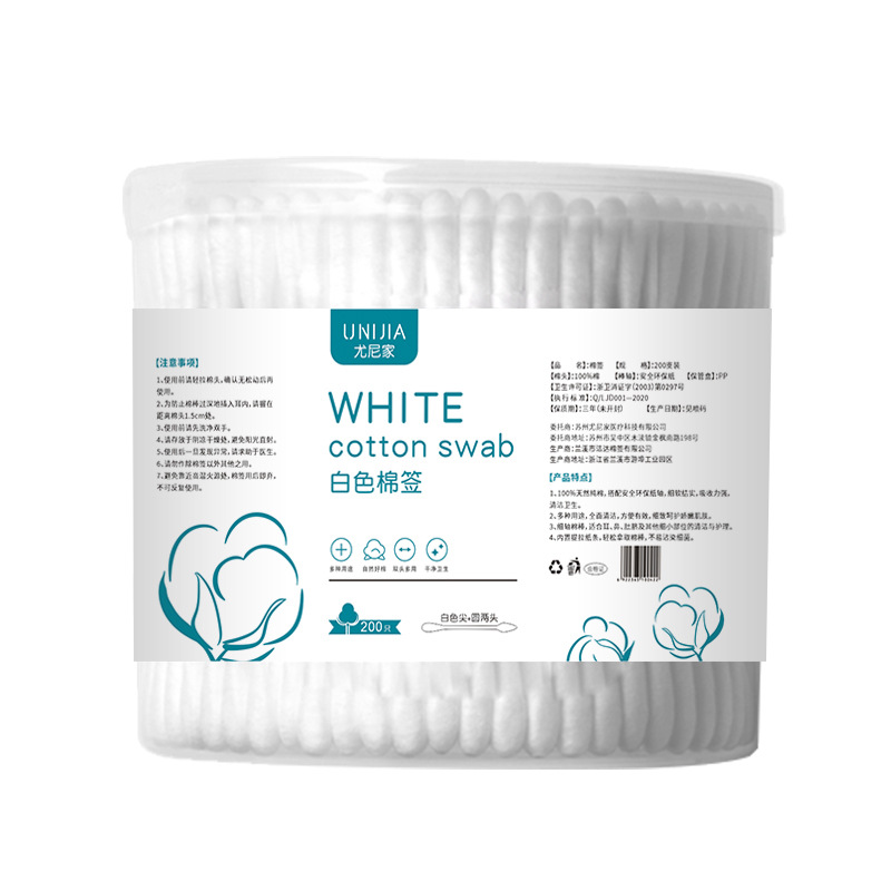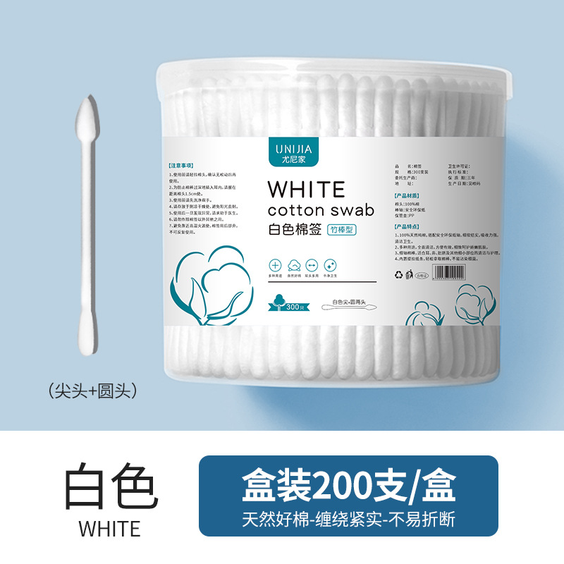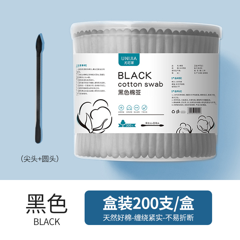 尤尼家200支盒装卸妆清洁卫生棉签掏耳朵黑色棉棒一次性双头棉签
