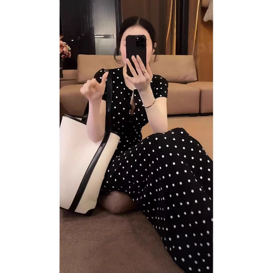高端精致黑色波点连衣裙2025女新款气质女装高级感绝美包臀裙子夏