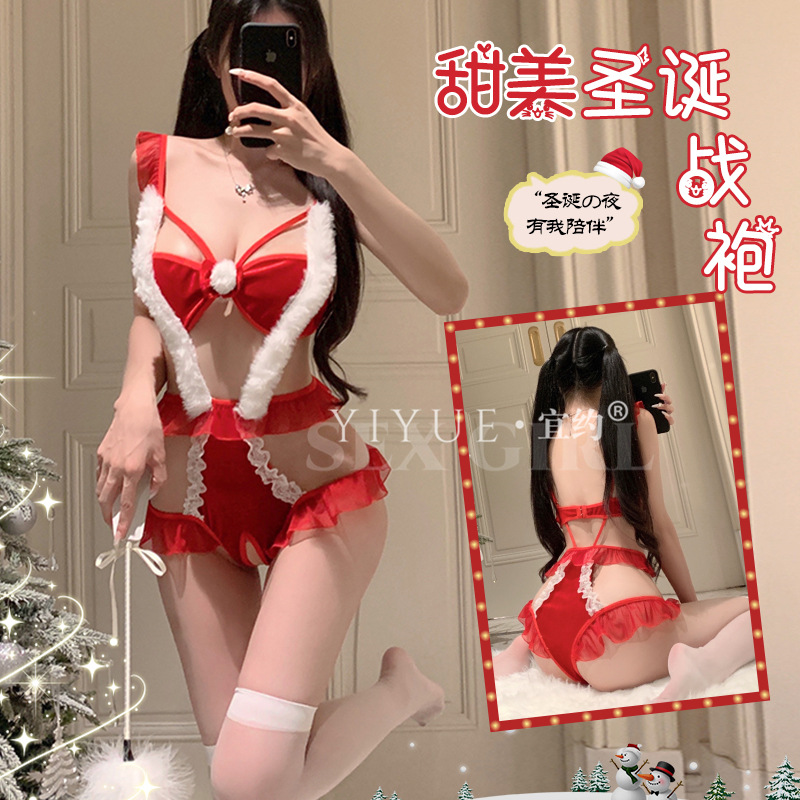圣诞装性感连体衣开裆制服情趣内衣免脱睡衣战袍