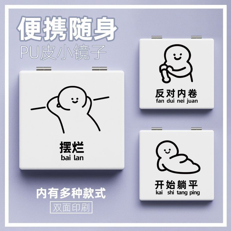 摆烂风随身便携镜子简约化妆镜学生折叠可爱小女生补妆镜随身带
