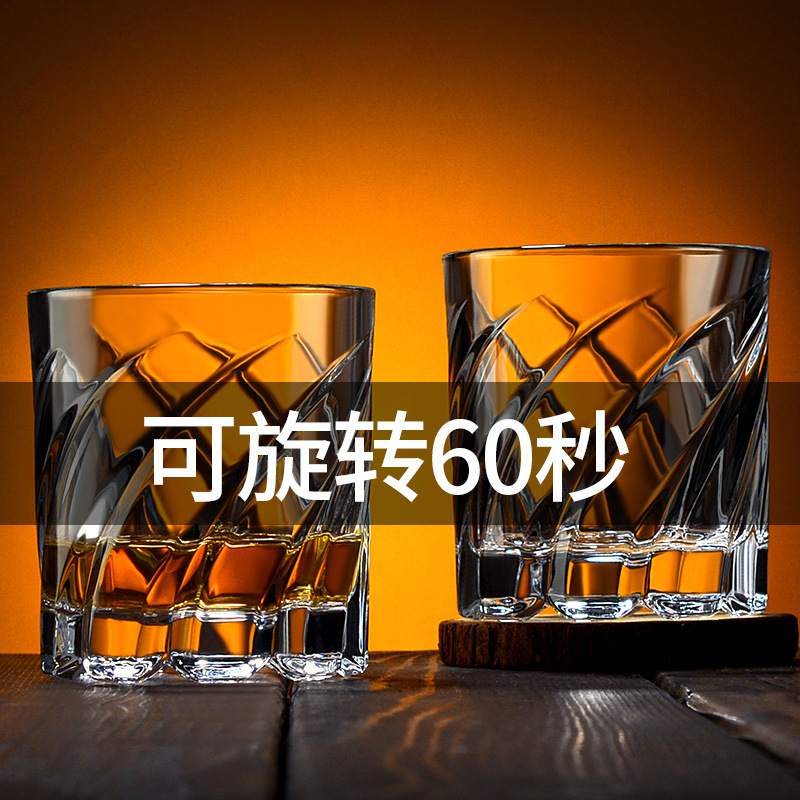 创意不倒翁旋转威士忌酒杯水晶玻璃家用啤酒洋酒杯子鸡尾酒螺旋杯