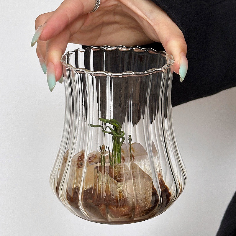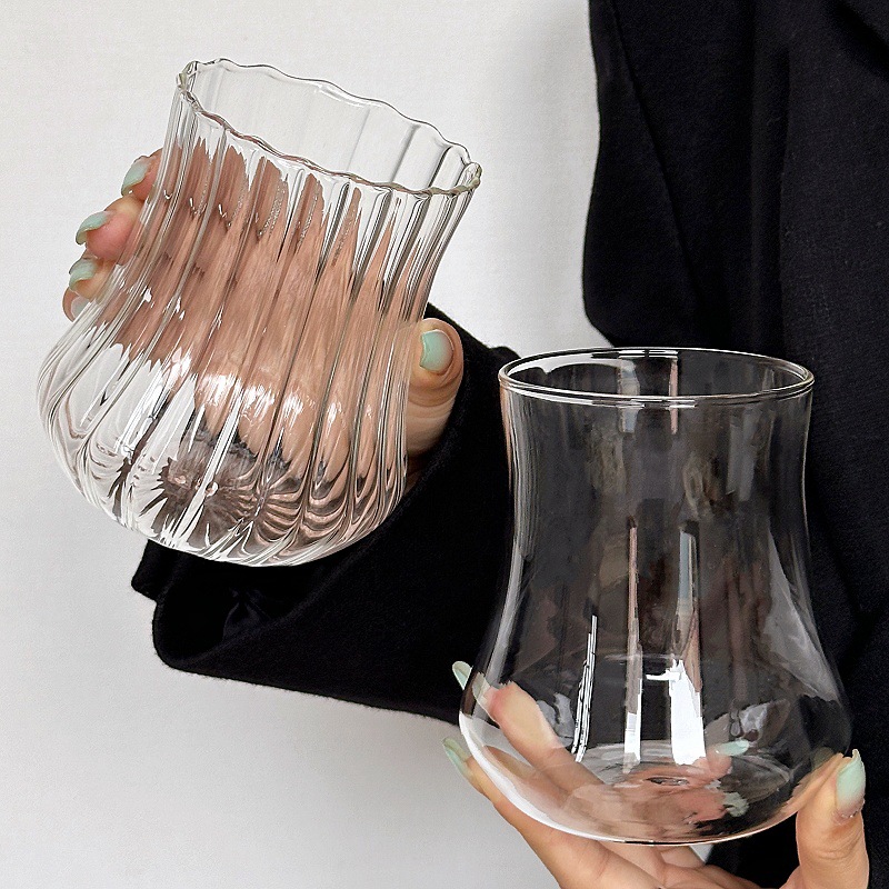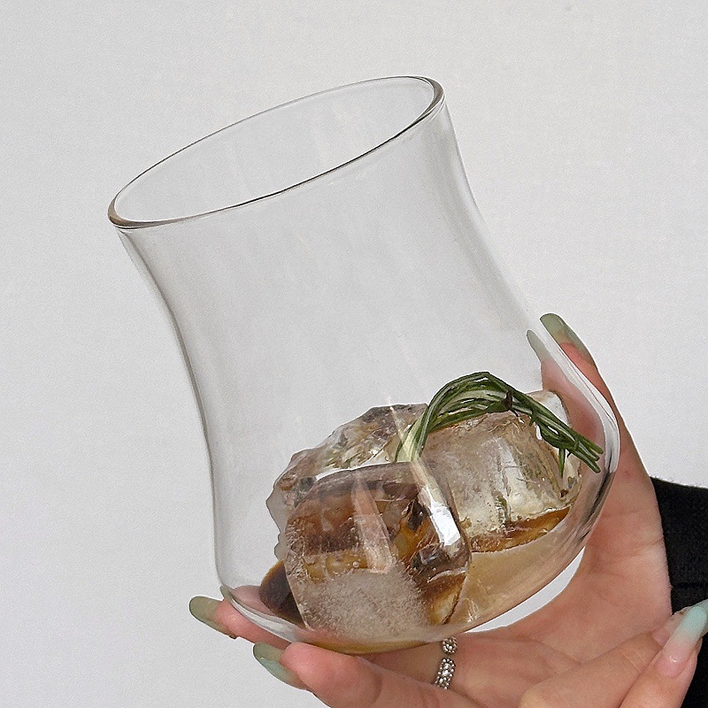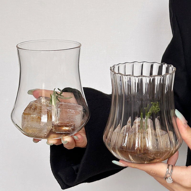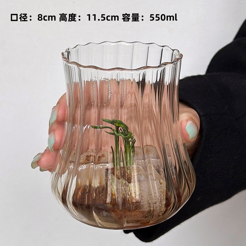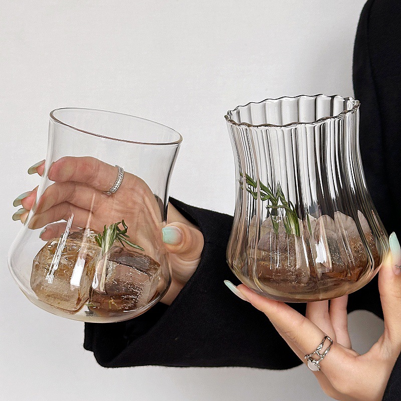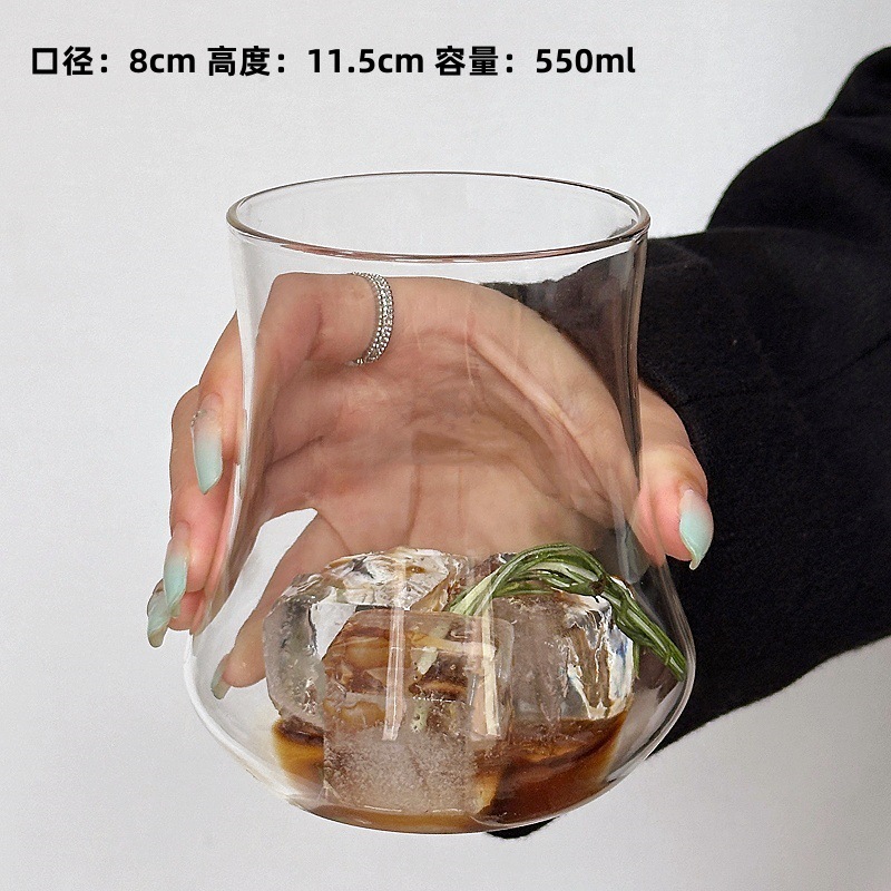 小众ins复古鼓型玻璃杯冰美式咖啡杯大容量水果茶杯果汁杯饮品杯
