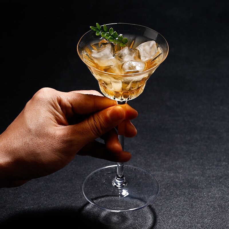 水晶高脚杯中古玻璃杯高颜值创意香槟杯个性鸡尾酒葡萄酒杯子酒杯
