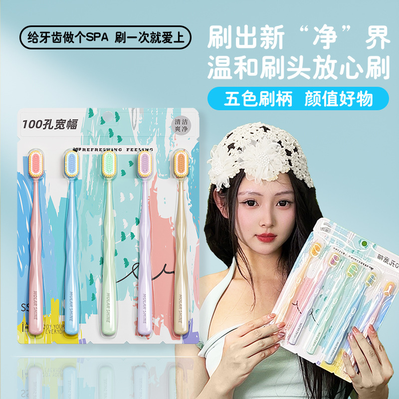 【5支装】便携分装式成人牙刷百孔款头软毛护龈牙刷