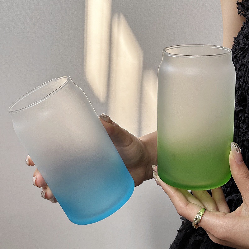 ins网红磨砂渐变色易拉罐玻璃杯冰咖啡杯冷饮杯拿铁杯气泡杯酒杯