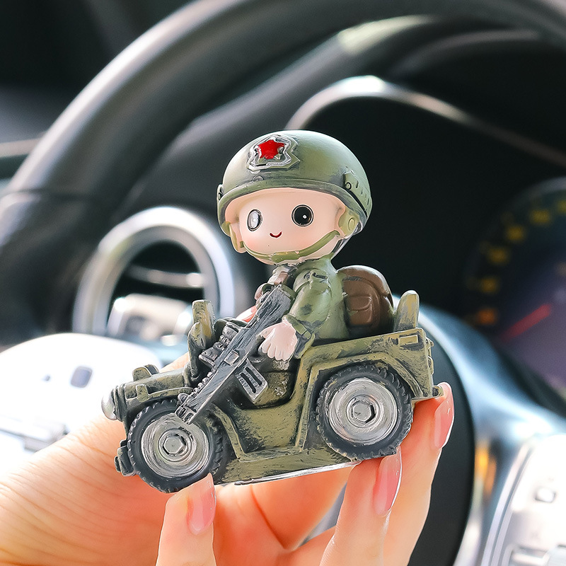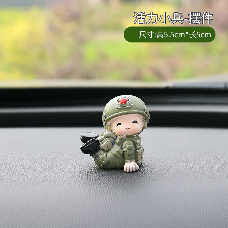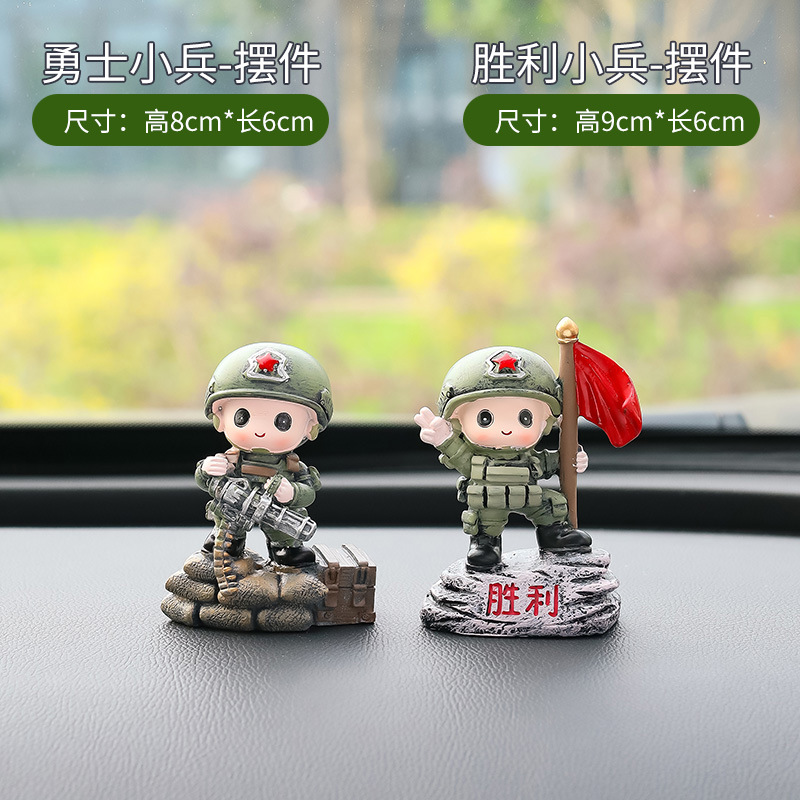 军人公仔手办汽车摆件树脂工艺车内装饰人偶小兵迷彩战士车载礼品