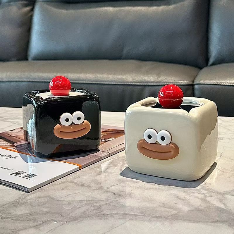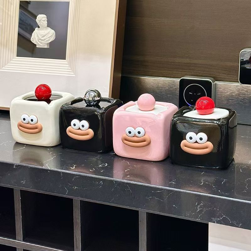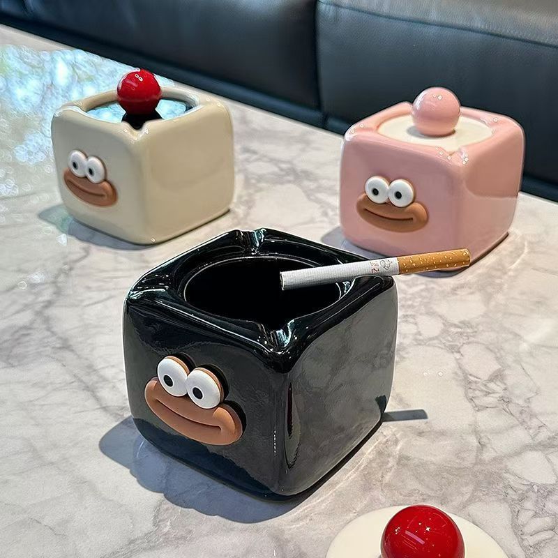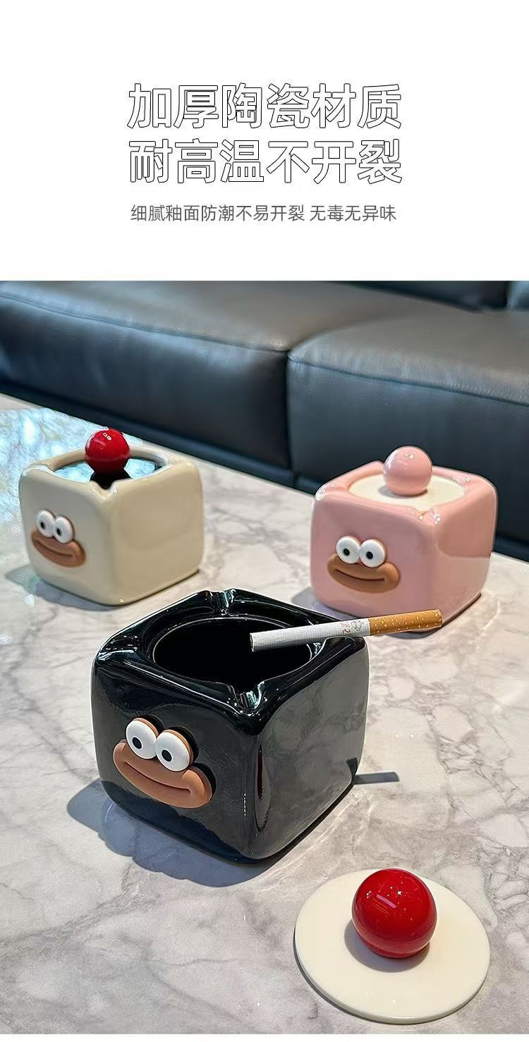 高颜值烟灰缸家用装饰个性客厅陶瓷创意摆件带盖防飞灰烟缸摆件