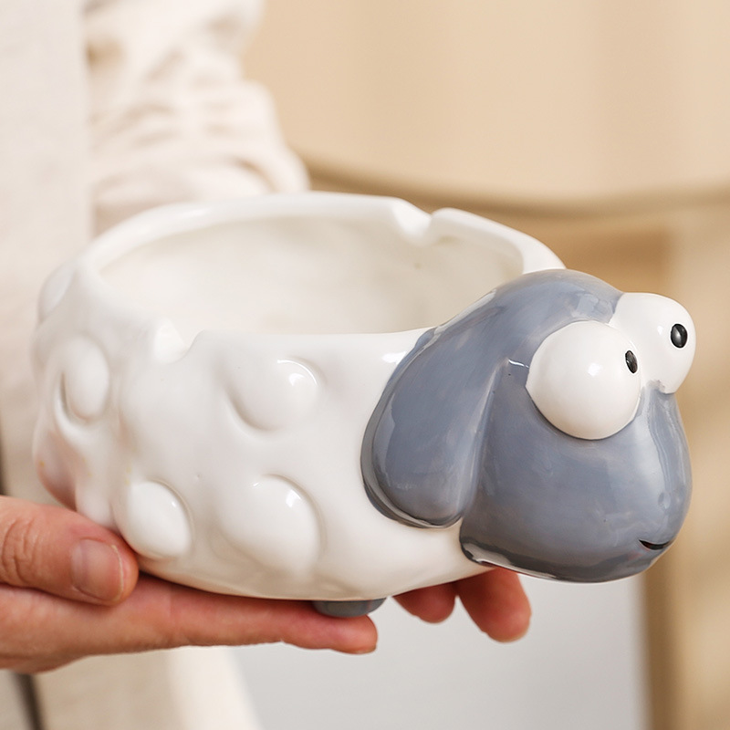 新款陶瓷小羊烟灰缸家用创意个性潮流卡通式ins风办公室客厅大号