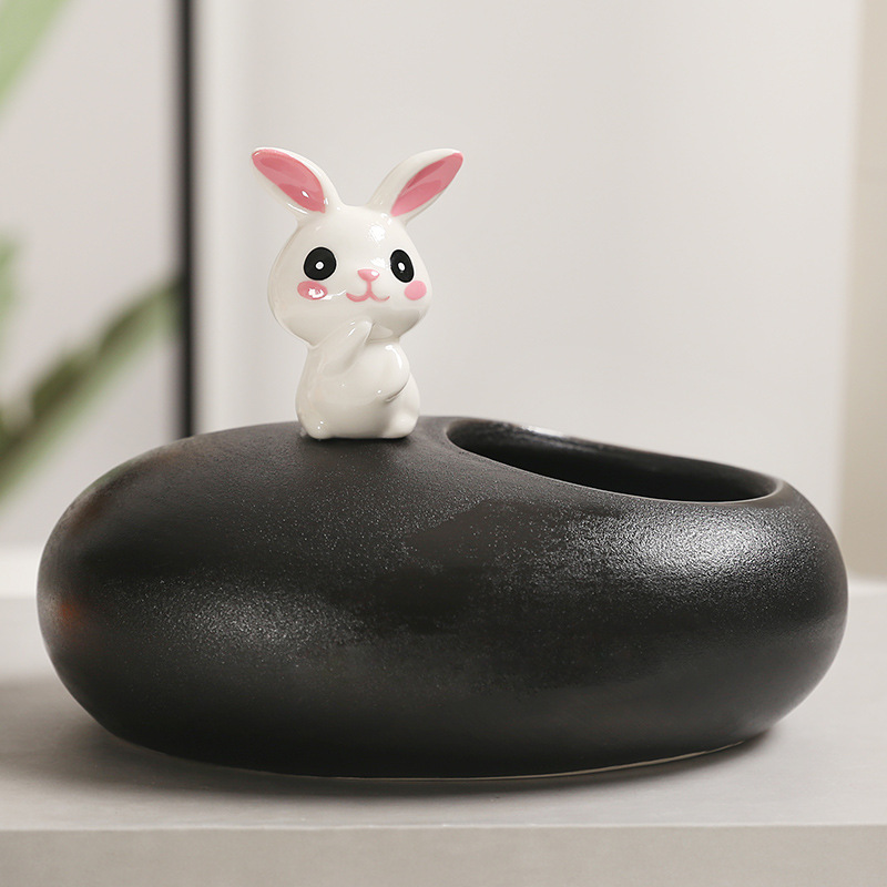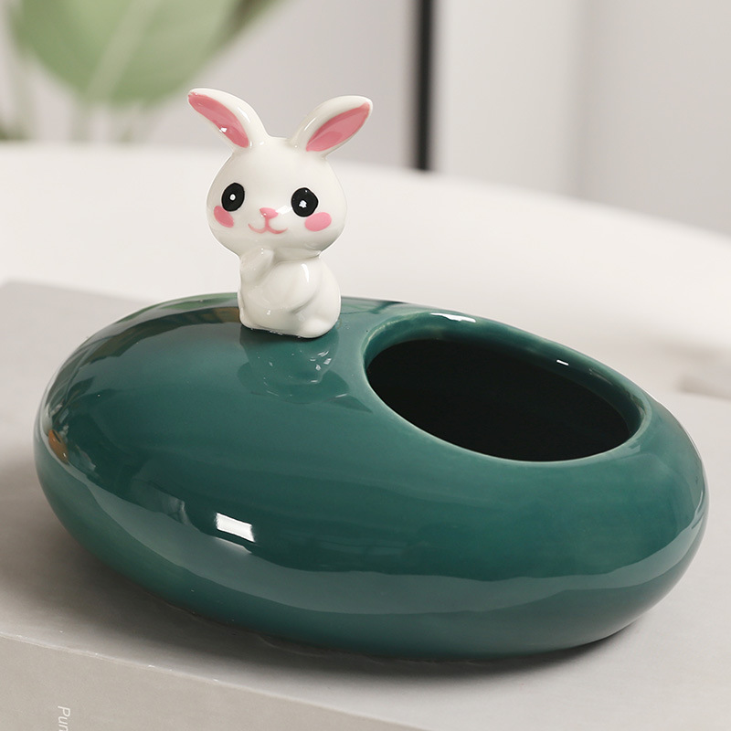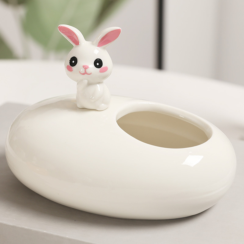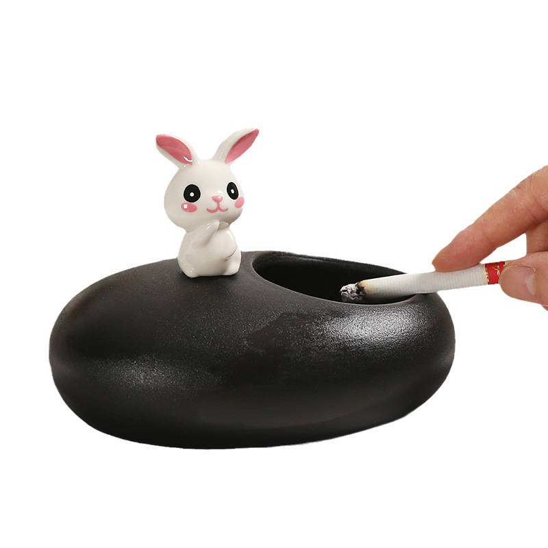 北欧风陶瓷烟灰缸创意兔子潮流时尚办公室防飞灰客厅家用烟缸摆件