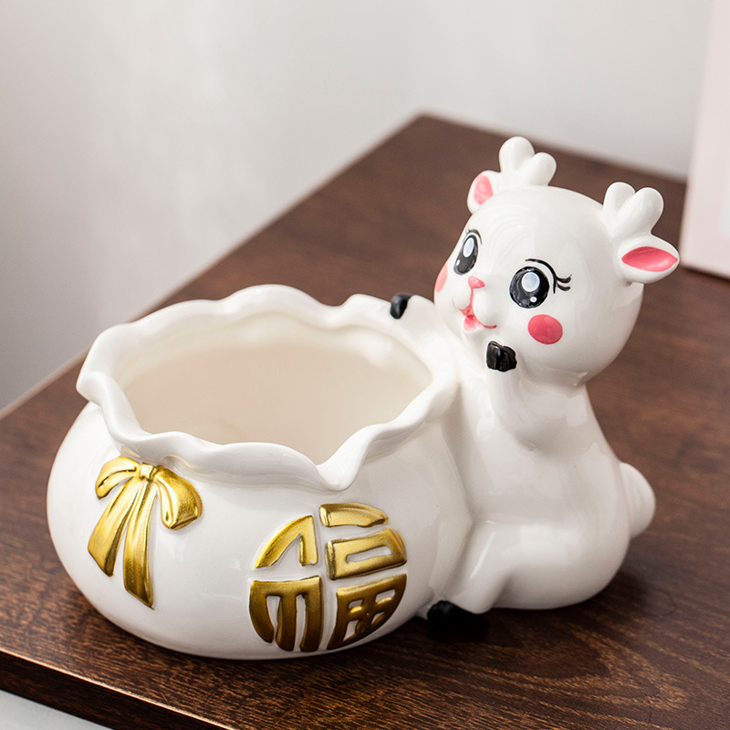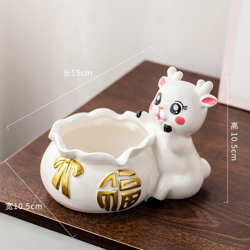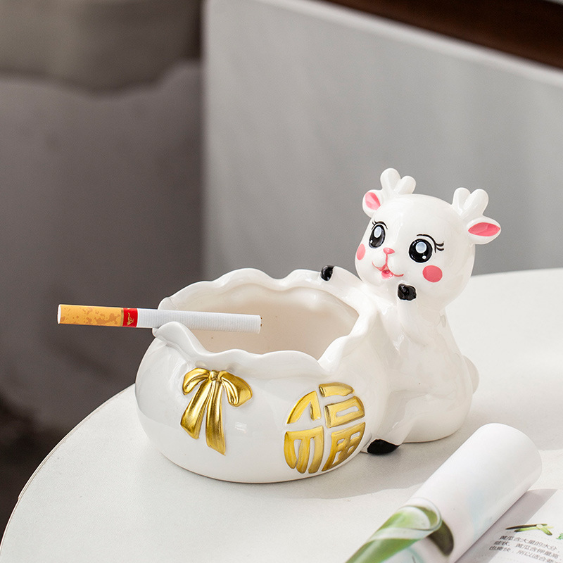 创意ins可爱招财鹿烟灰缸福袋防飞灰个性高端大气家用客厅装饰品