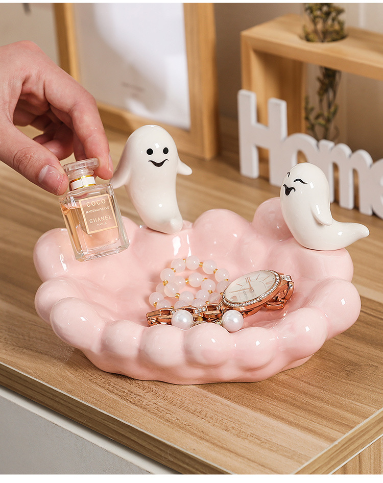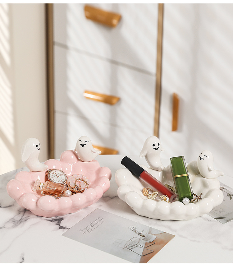 北欧幽灵ins风创意进门玄关钥匙收纳摆件轻奢装饰品客厅家用陶瓷