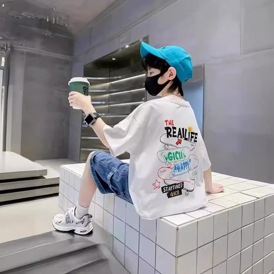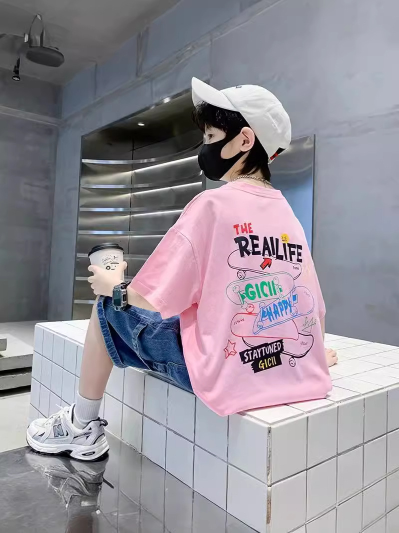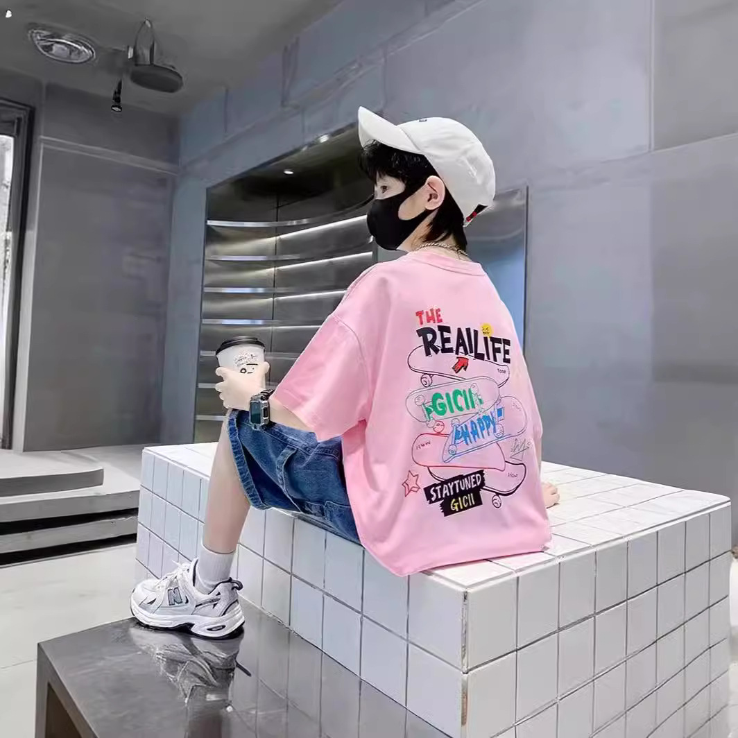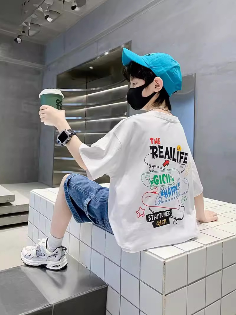 童装夏装短袖新款儿童男女童薄款洋气字母上衣男孩潮酷T跨境