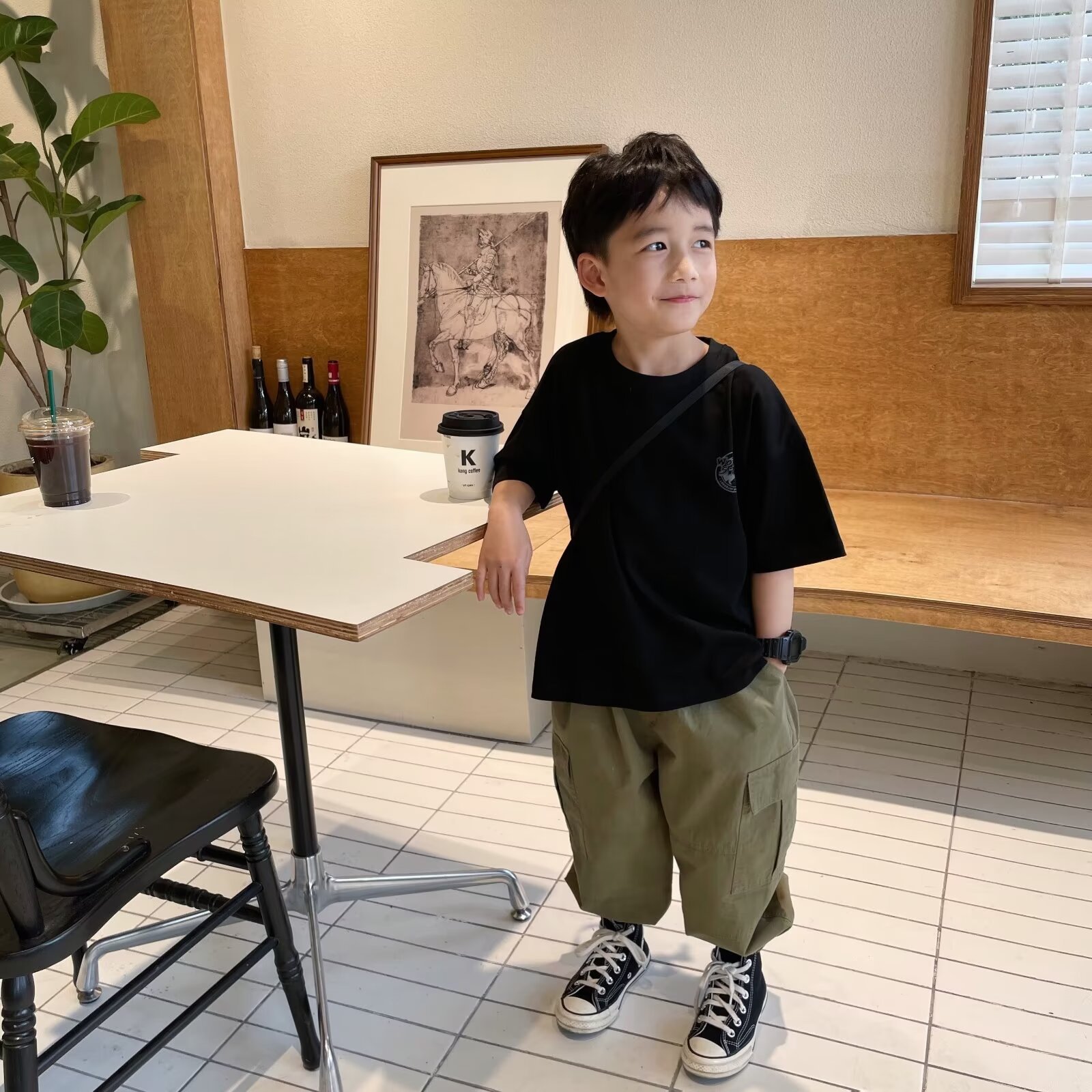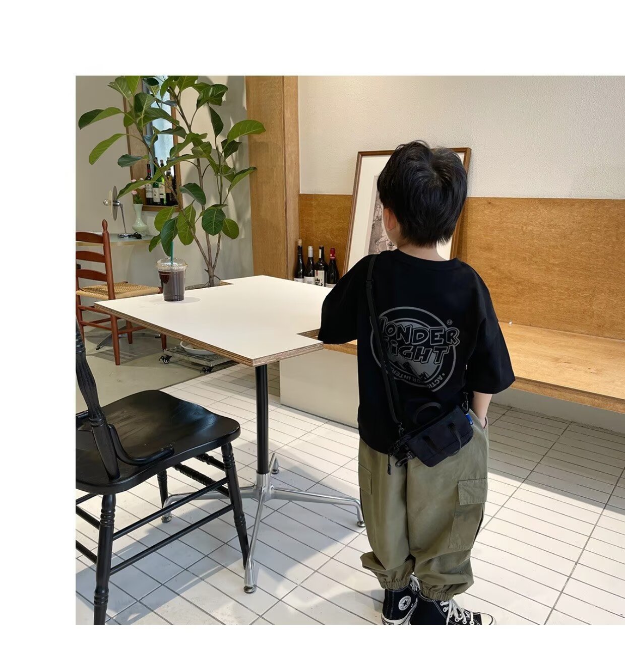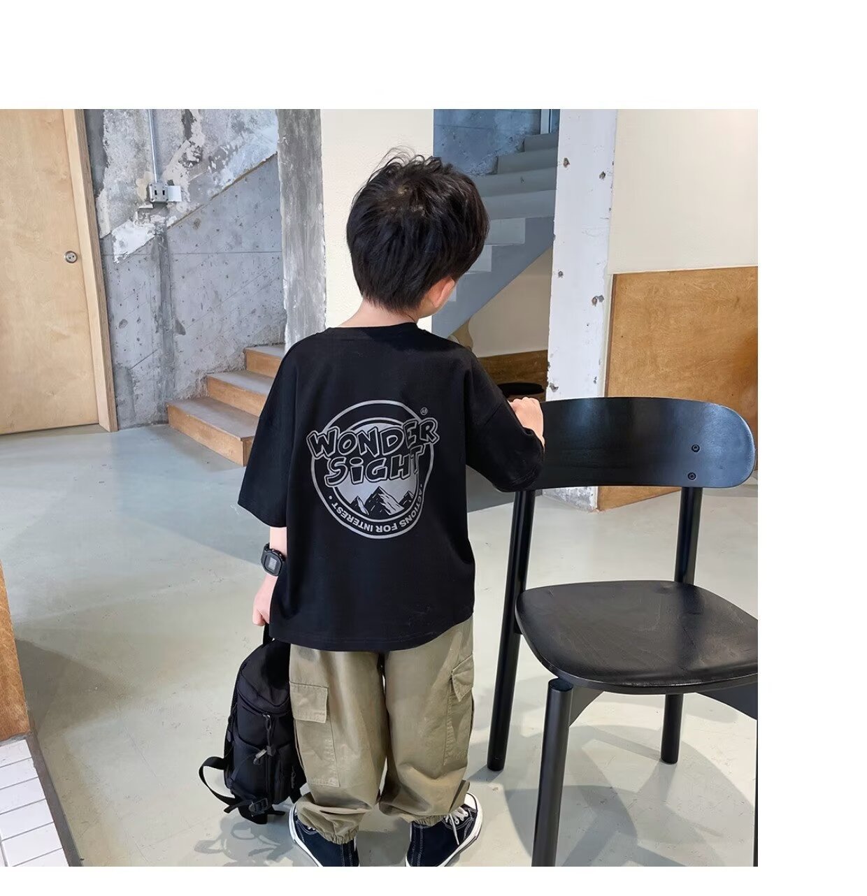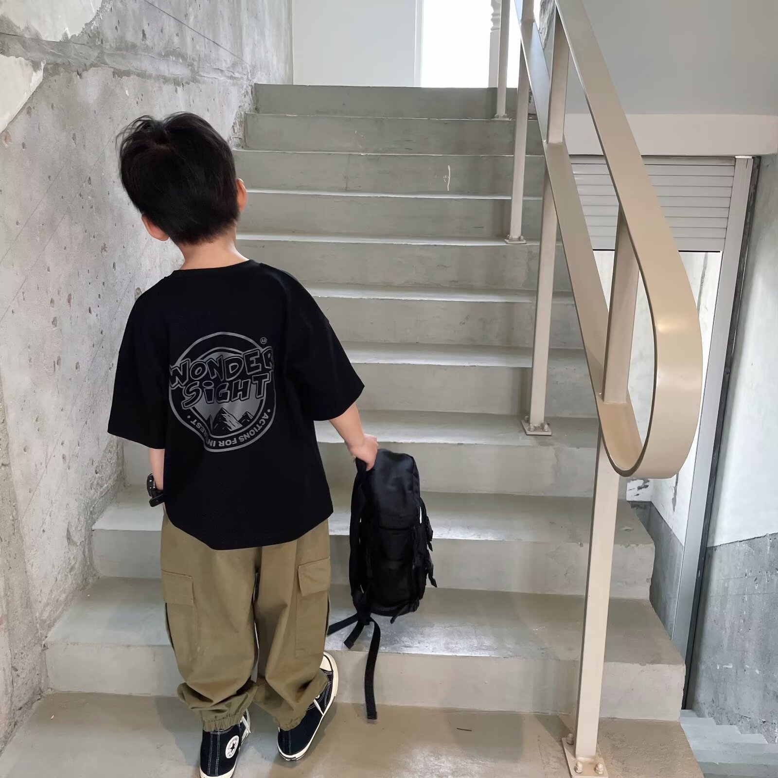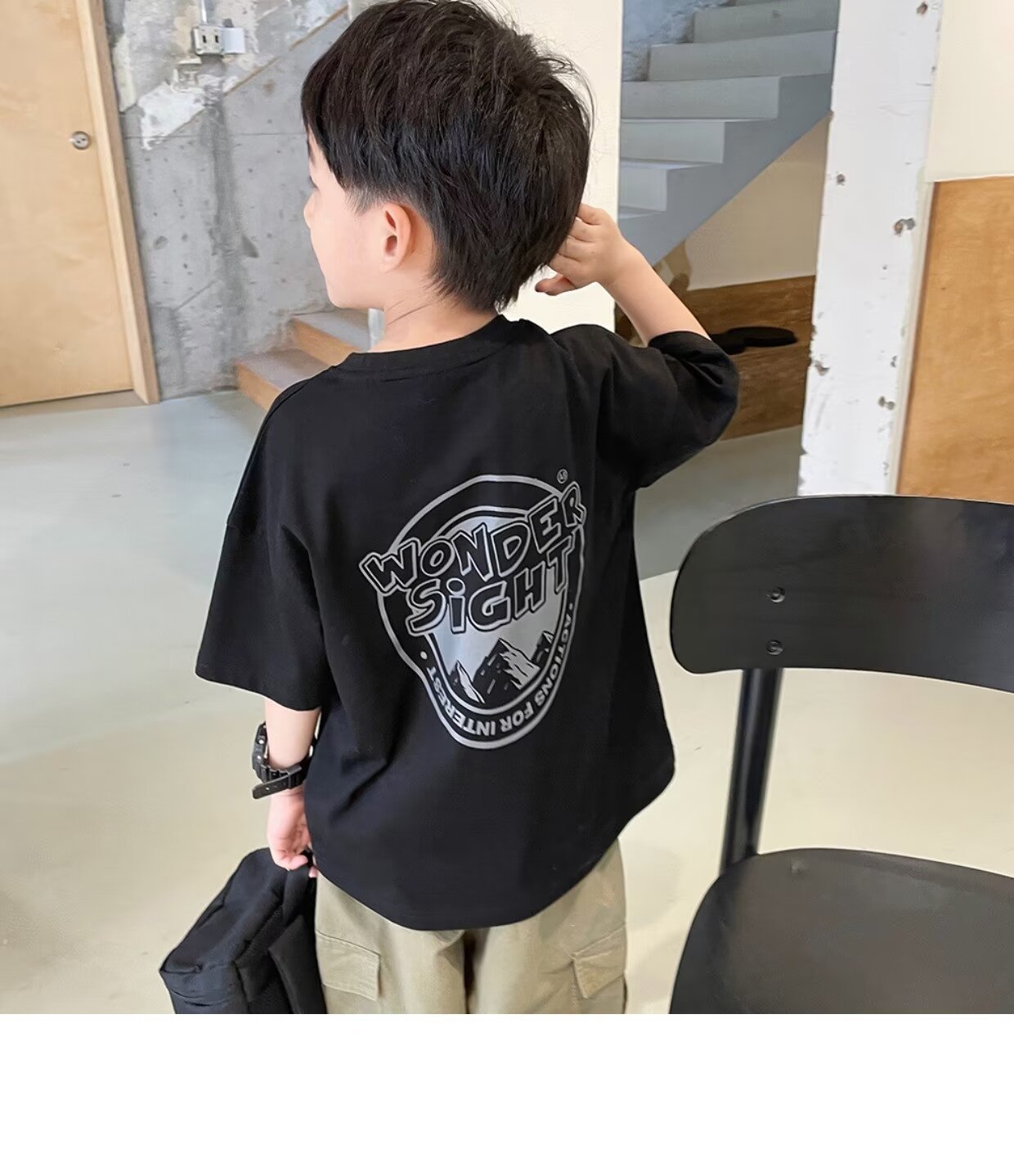 夏季新款精梳棉印花黑色休闲短袖T恤中大童运动打底衫上衣潮