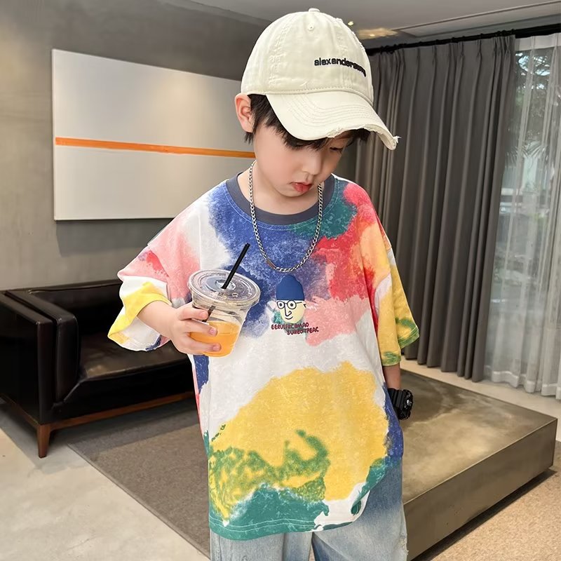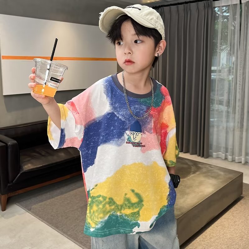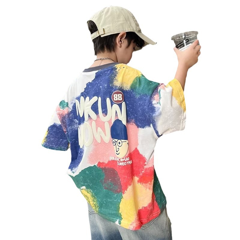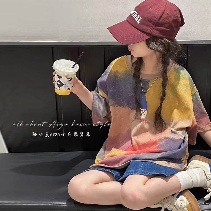 夏装新款宽松街头情侣T恤涂鸦手绘男女童装潮流短袖上衣跨境