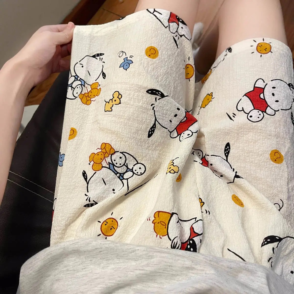 遛弯裤子睡裤女夏天薄款宽松休闲短裤印花卡通可爱防蚊裤家居长裤