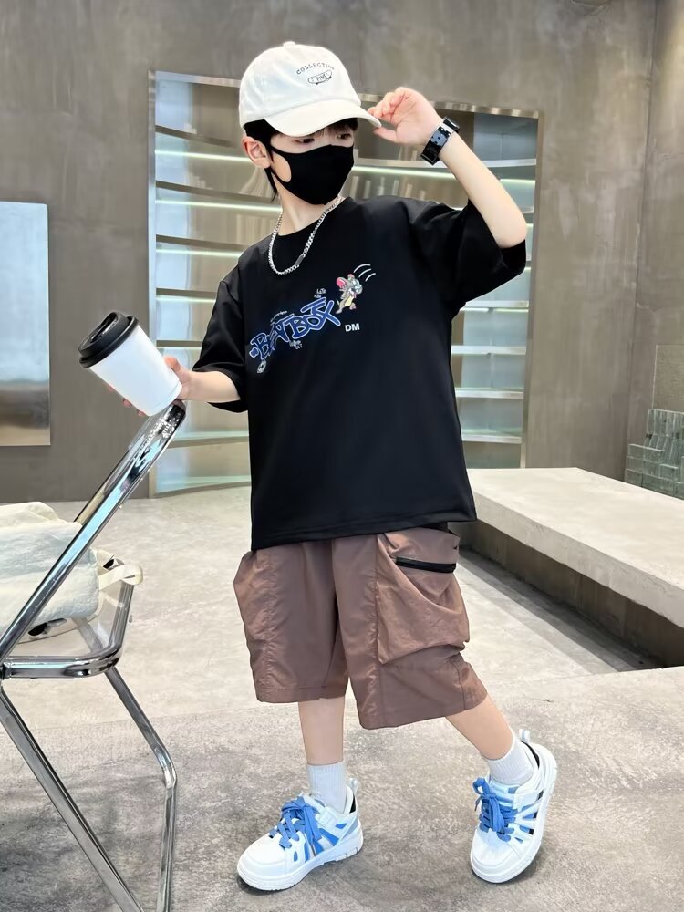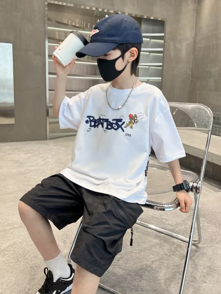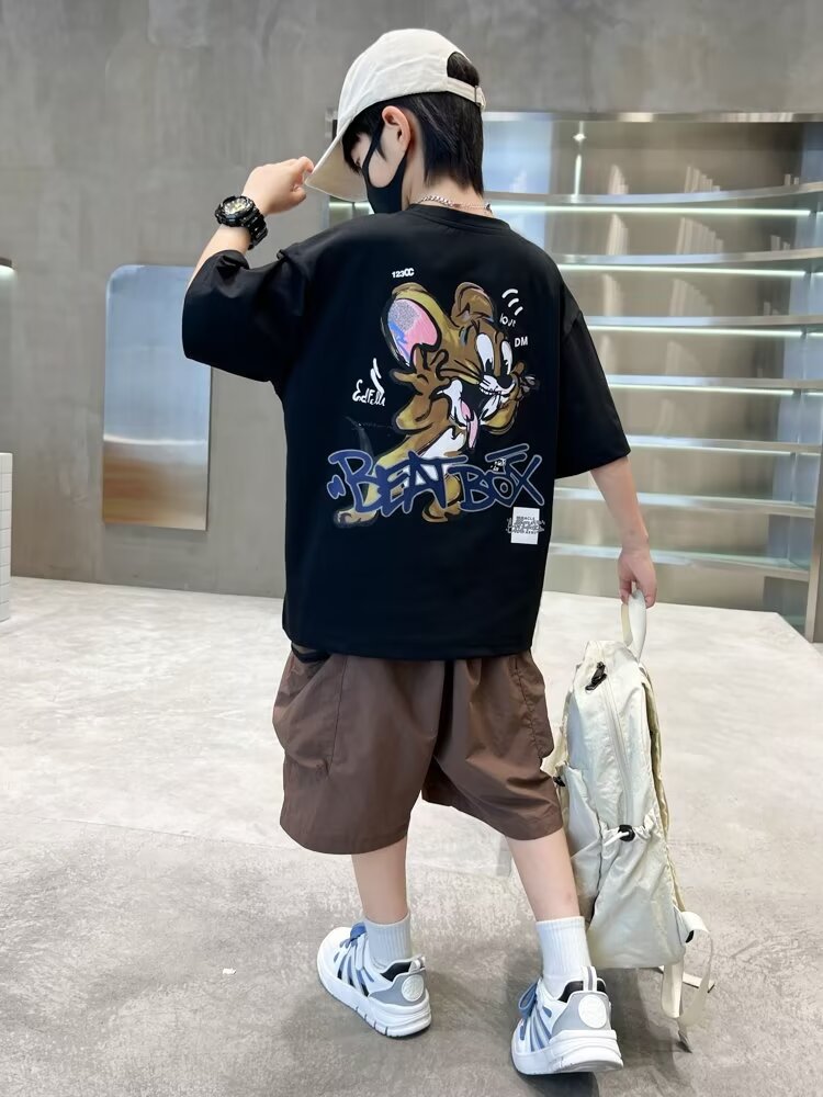 男童短袖透气吸汗棉质t恤夏季新款宽松帅气卡通中大童半袖儿童潮