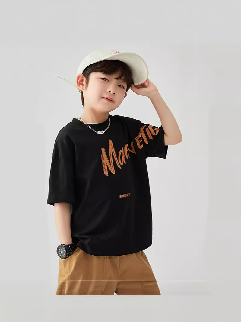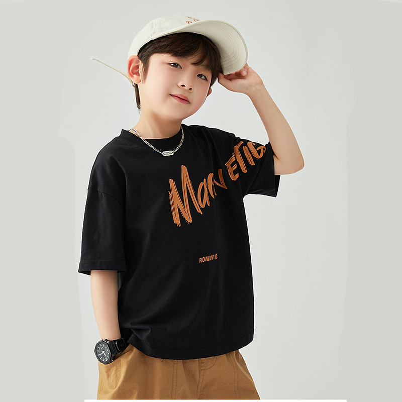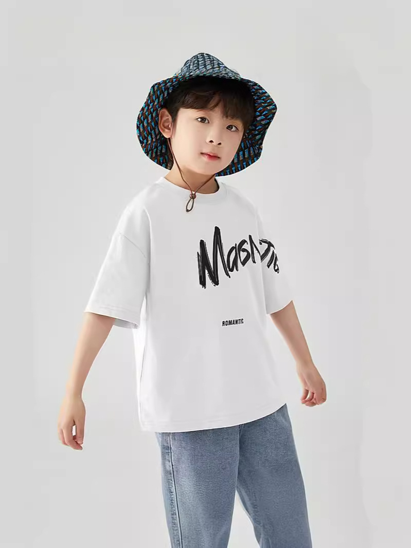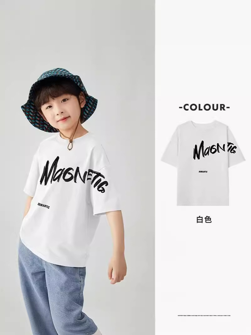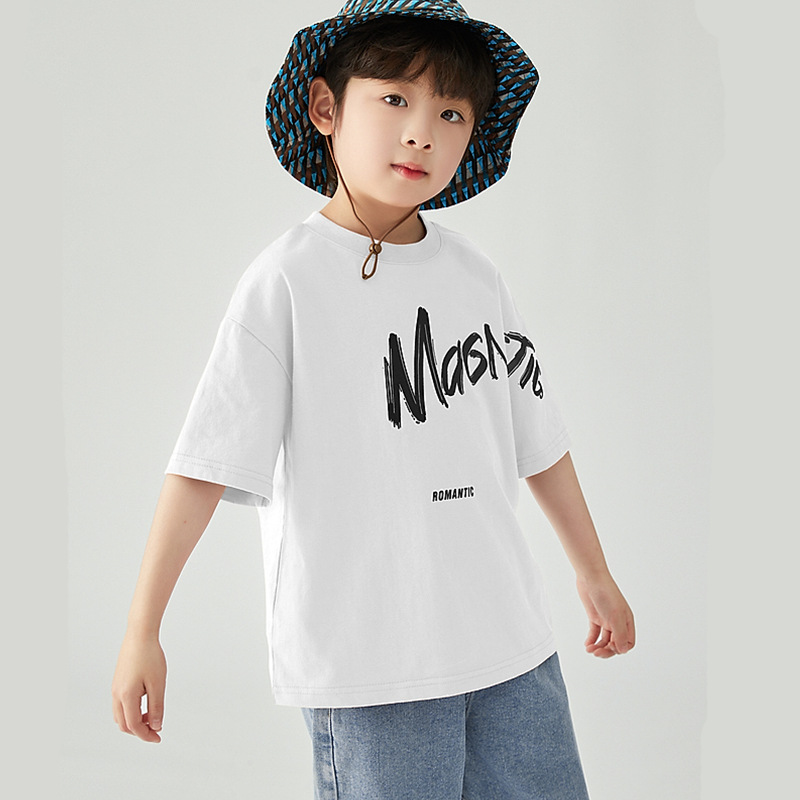 男童夏季趣味印花字母短袖T恤新款儿童透气纯棉上衣洋气女童