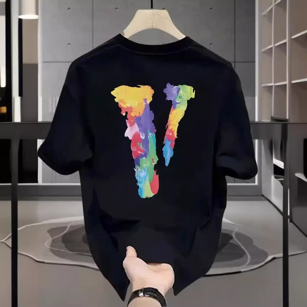 高端短袖t恤男生简约彩色字母印花百搭潮牌痞帅休闲宽松圆领上衣