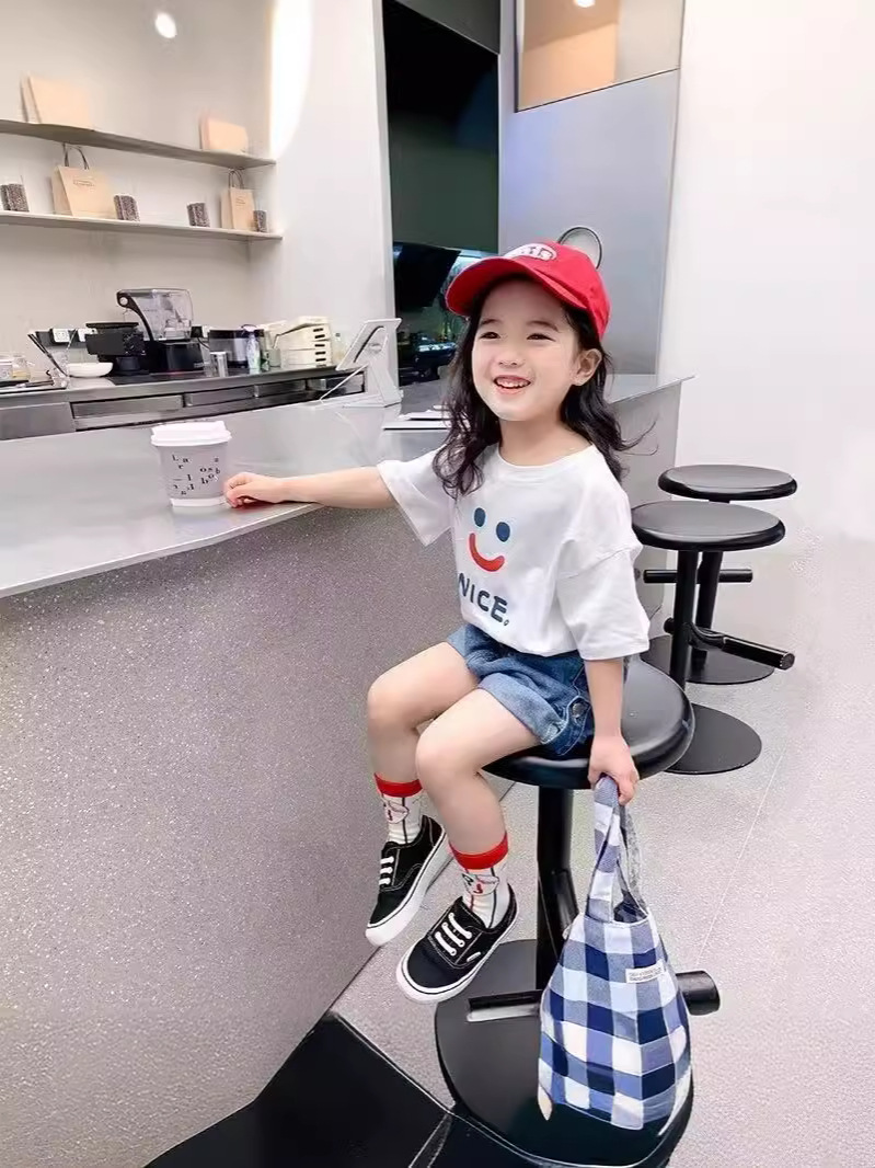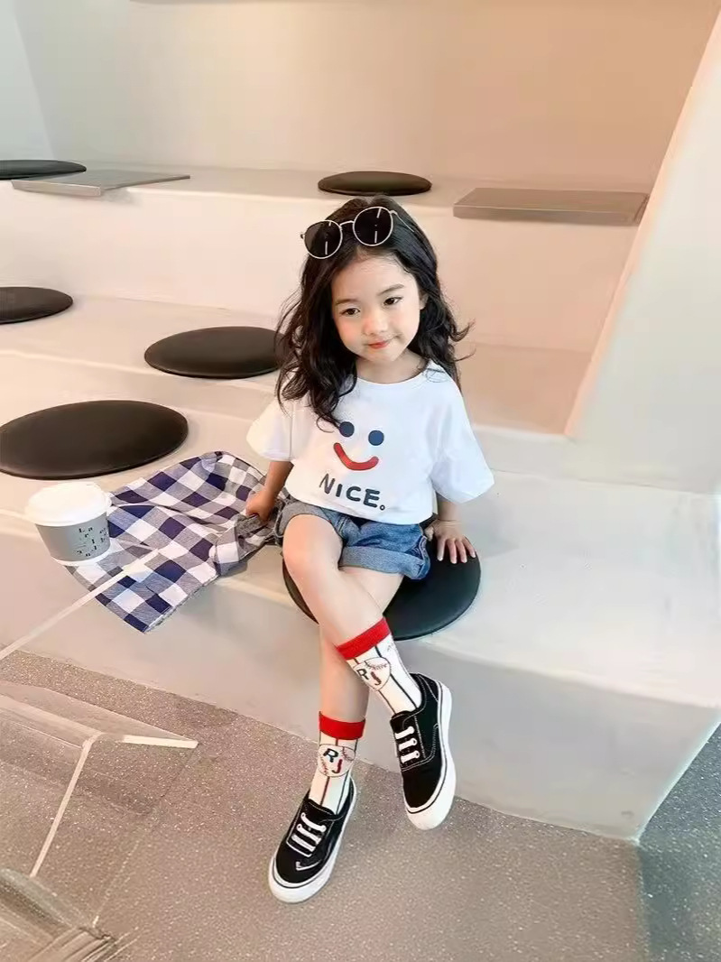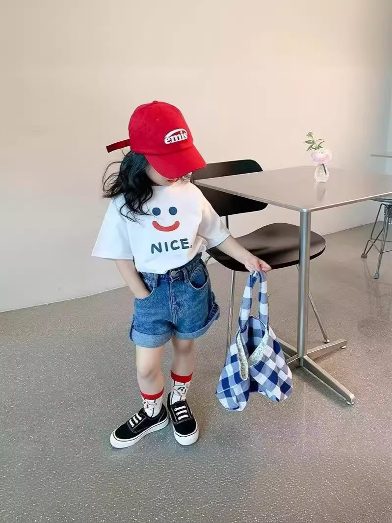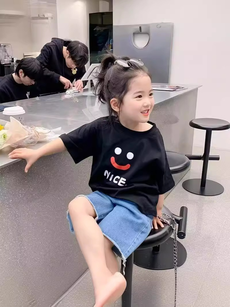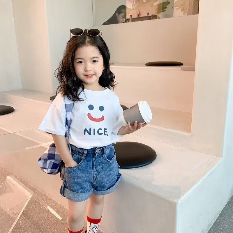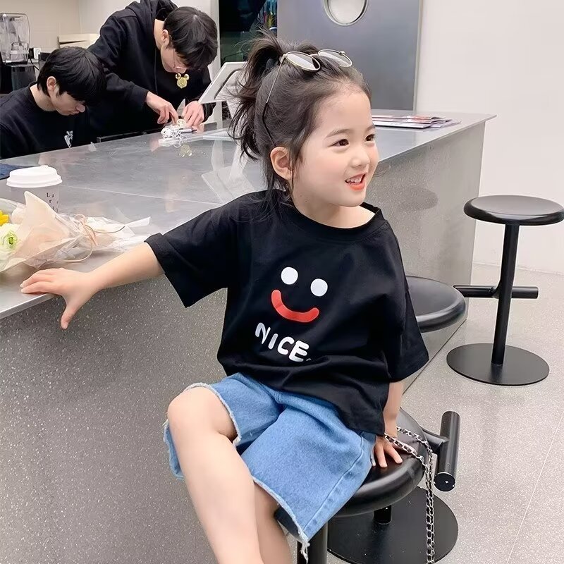 童装韩版T恤夏季儿童炸街短袖男女童笑脸印花休闲T恤洋气半袖