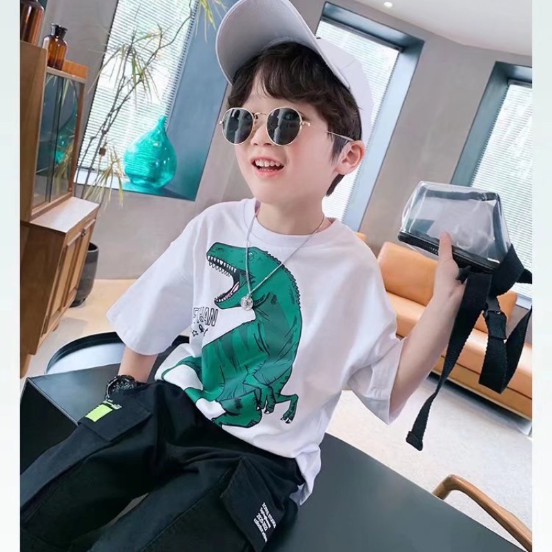 童装男童短袖t恤夏装男孩体恤中大童上衣新款纯棉恐龙印花T恤