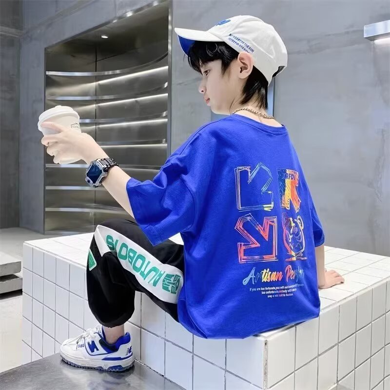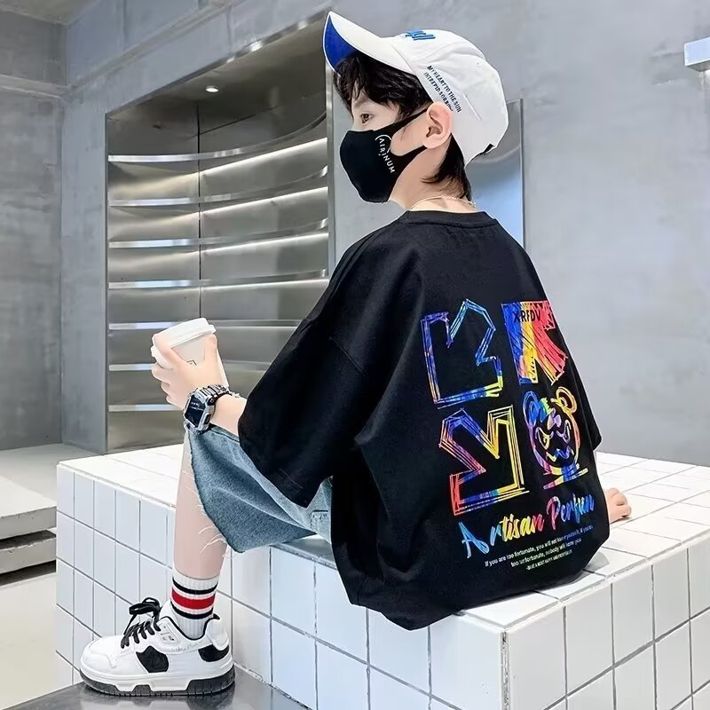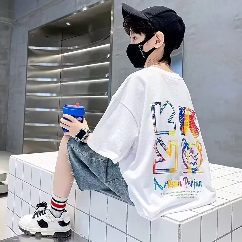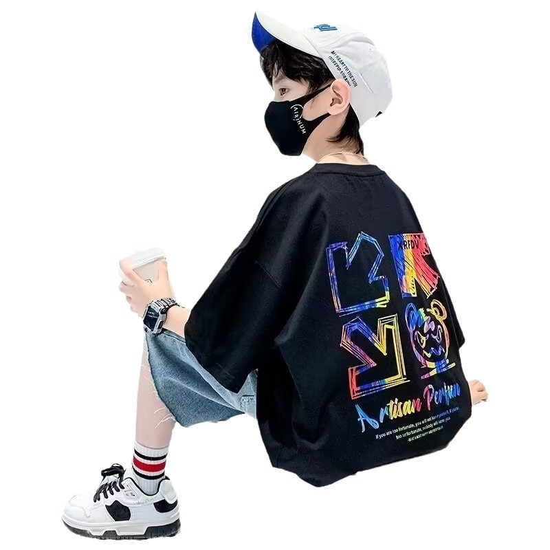 儿童t恤男童短袖T恤夏季薄款儿童卡通休闲涂鸦上衣中大童帅气半袖