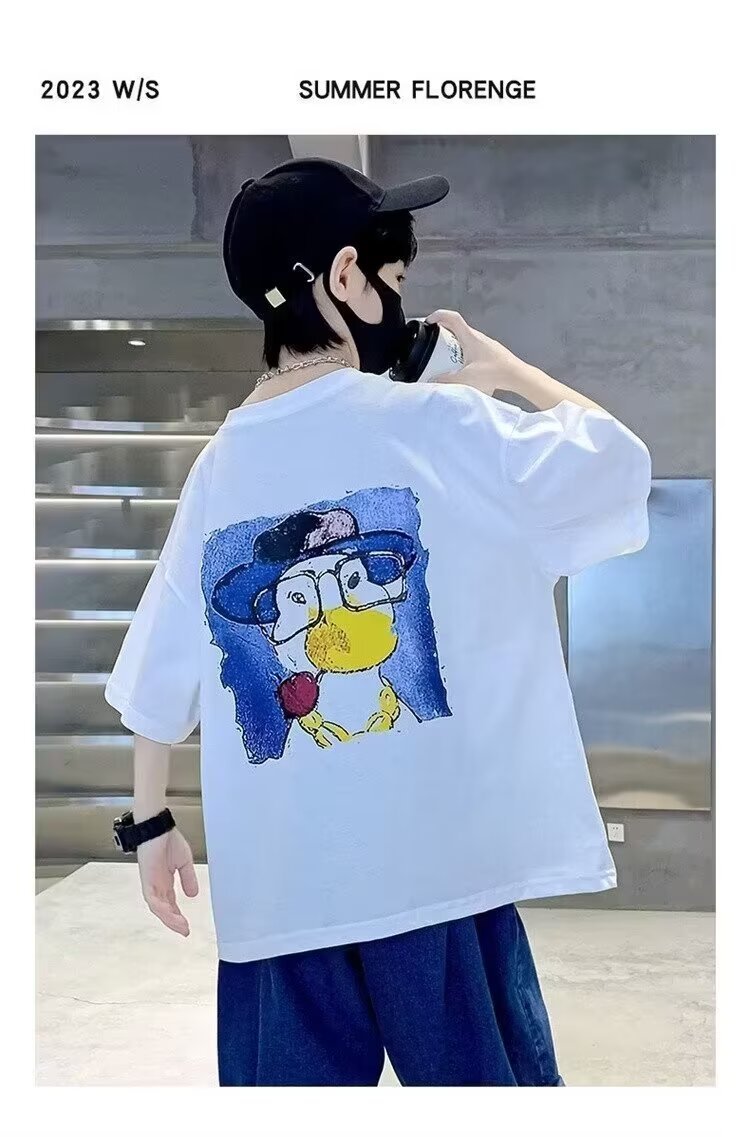 夏季纯棉休闲时尚短袖T恤男生潮牌印花美式高宽松街圆领半袖上衣