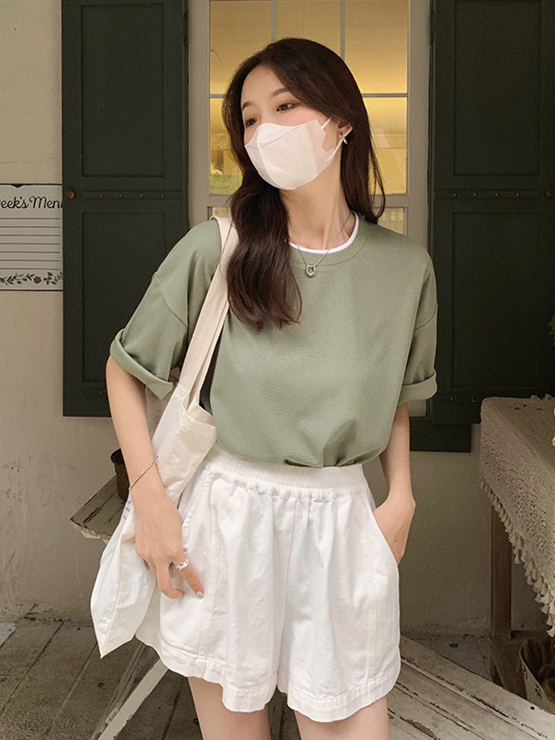 纯色高级感短袖T恤女新款宽松大码小众拼接假两件内搭上衣夏