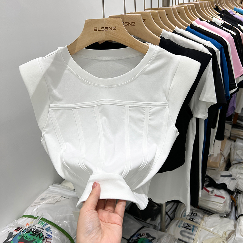白色正肩短袖t恤女ins潮夏季独特别致鱼骨垫肩短款无袖上衣背心女