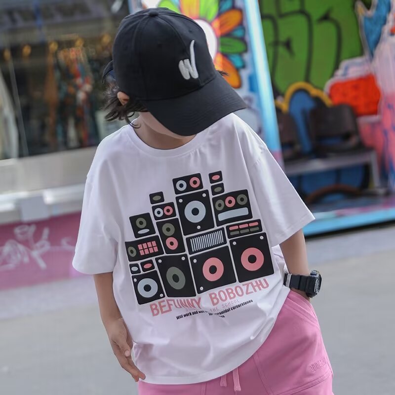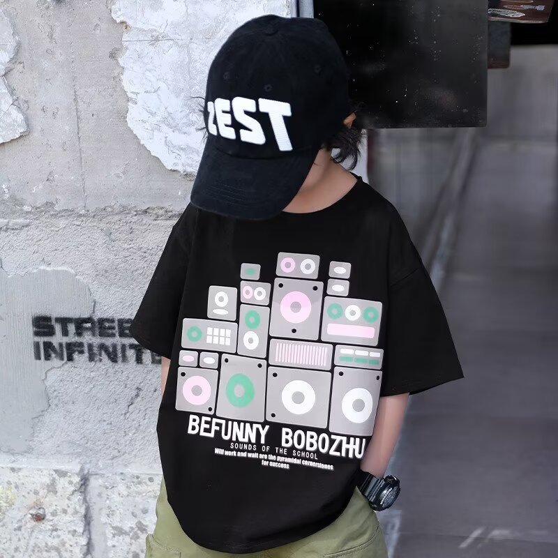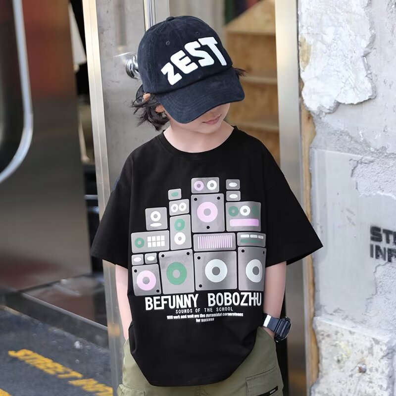 男童夏季短袖t恤童装短袖精梳棉年韩版圆领印花体恤上衣打底