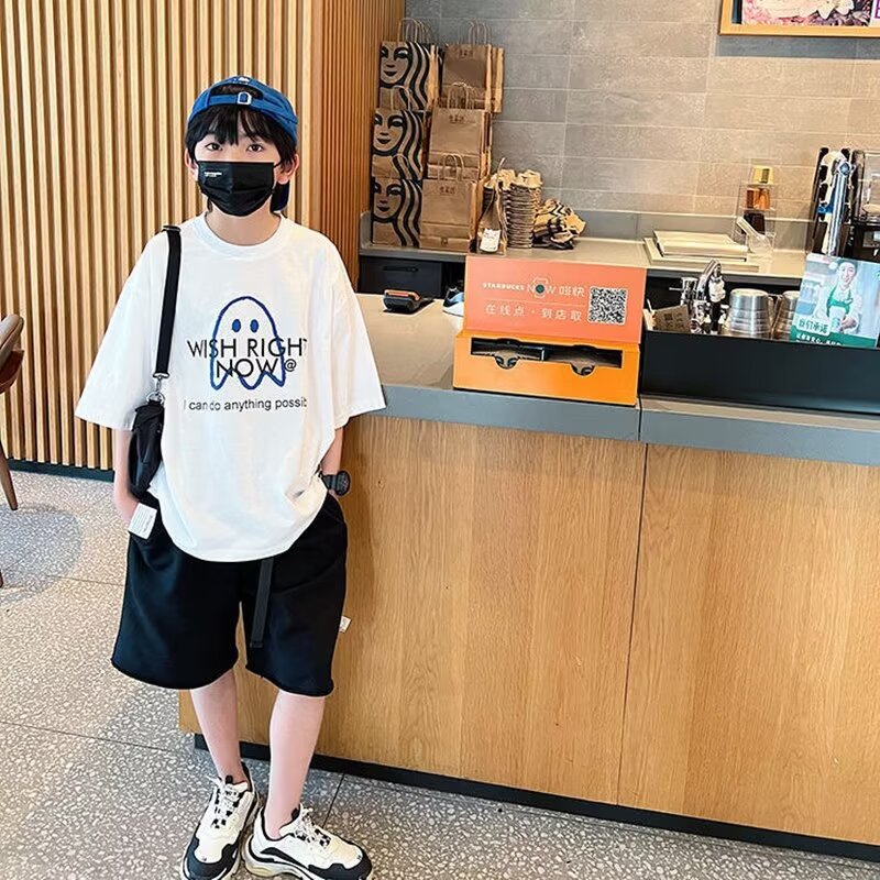 夏季短袖T恤儿童时尚潮流印花体恤衫童装百搭打底衫上衣半袖