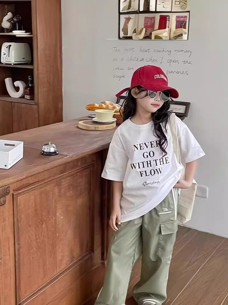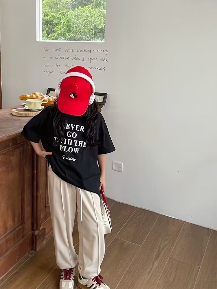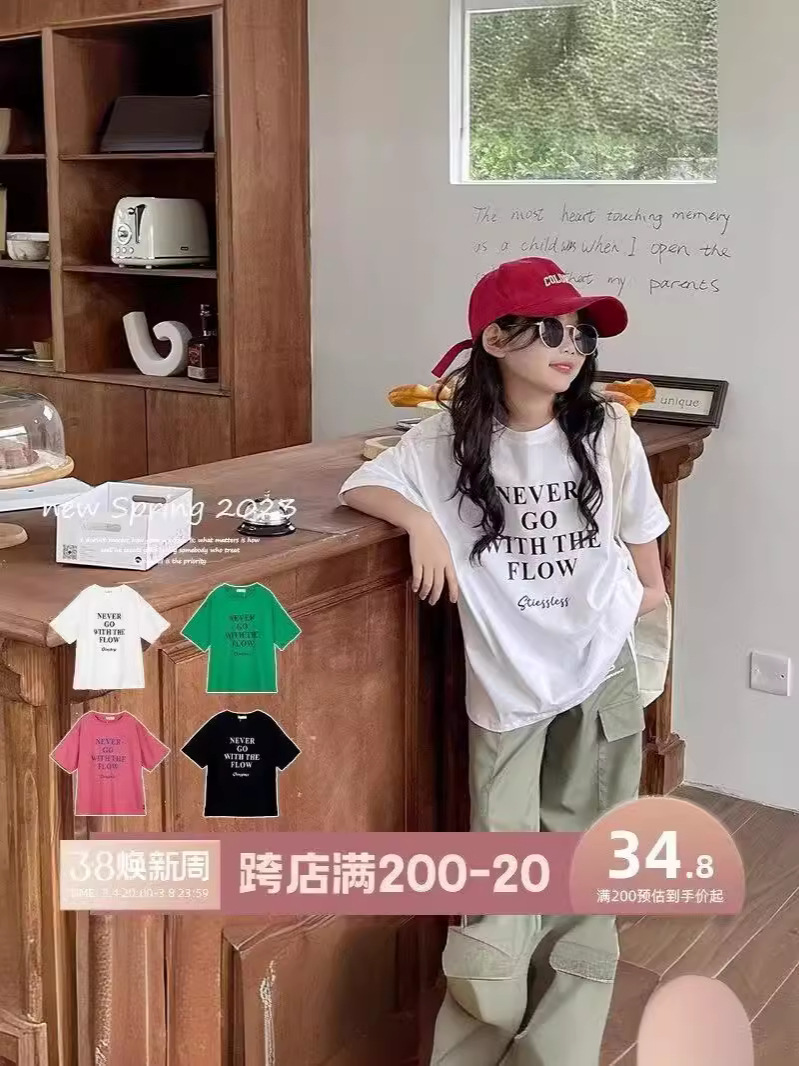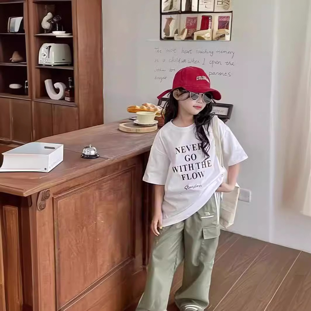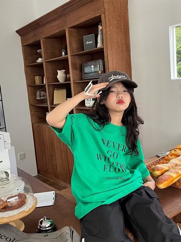 女童夏季短袖韩版洋气印花字母T恤外贸爆款纯棉打底衫上衣童
