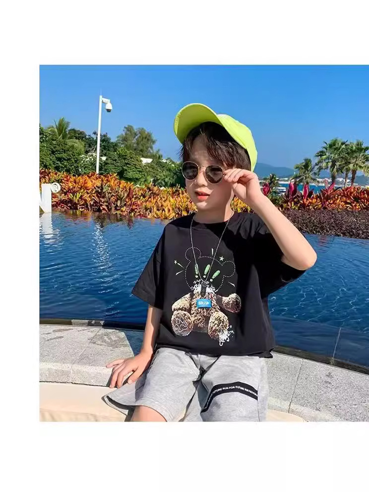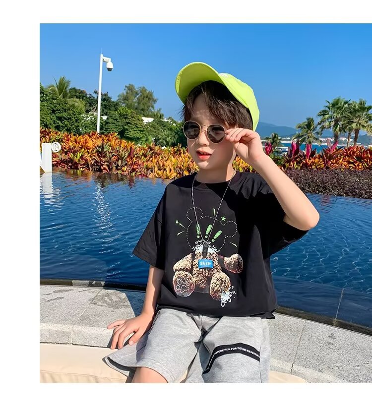 儿童圆领t恤短袖夏季大童时髦宽松上衣韩系休闲时尚半袖跨境