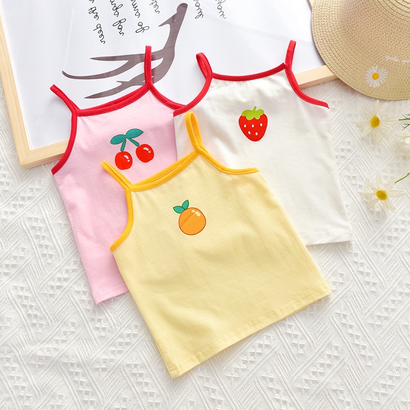 女童夏装背心吊带宝宝洋气儿童个性潮韩版草莓樱桃拼色莫代尔上衣