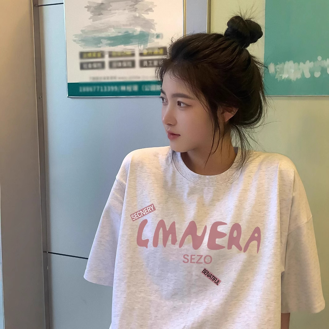 白灰色短袖t恤女夏季新款设计感小众宽松大版小个子纯棉半袖上衣
