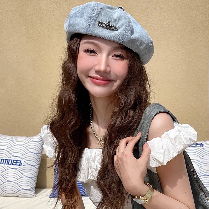 韩版新款复古牛仔贝雷帽女冬天显脸小南瓜帽韩版百搭大头围八角帽
