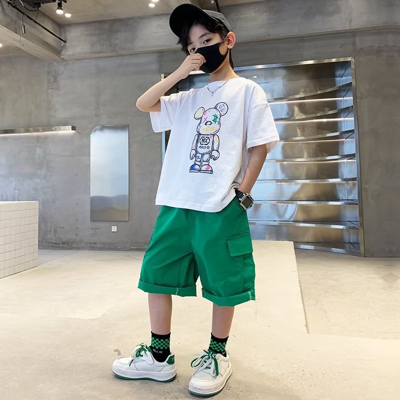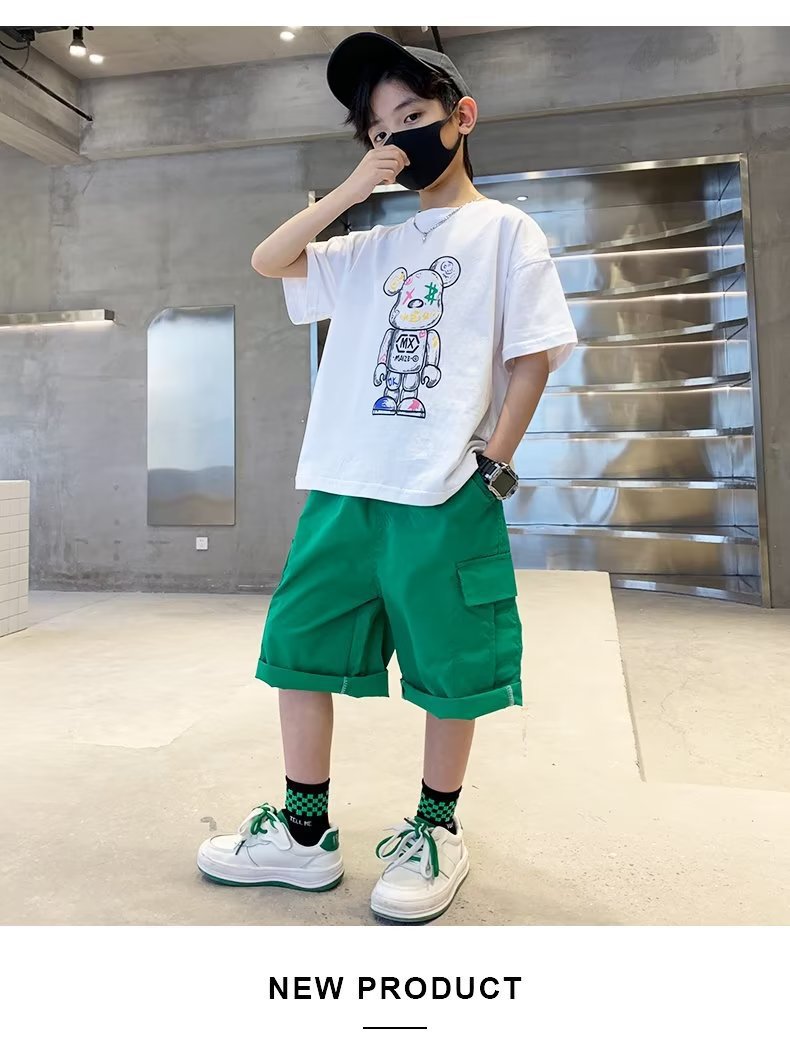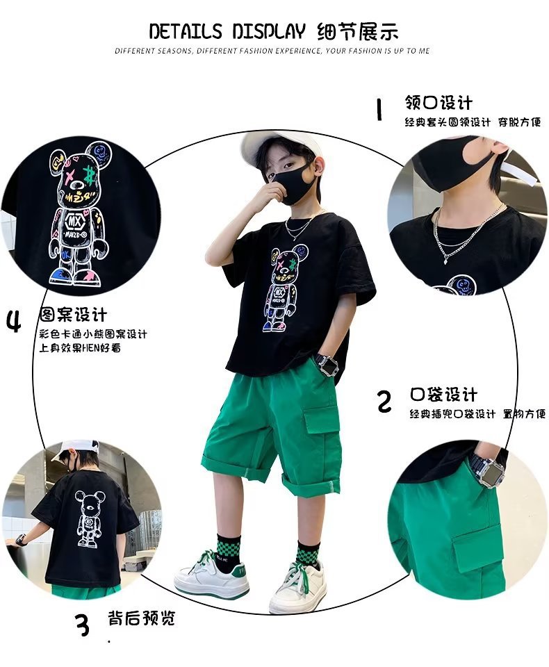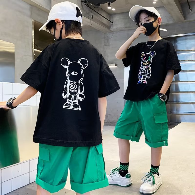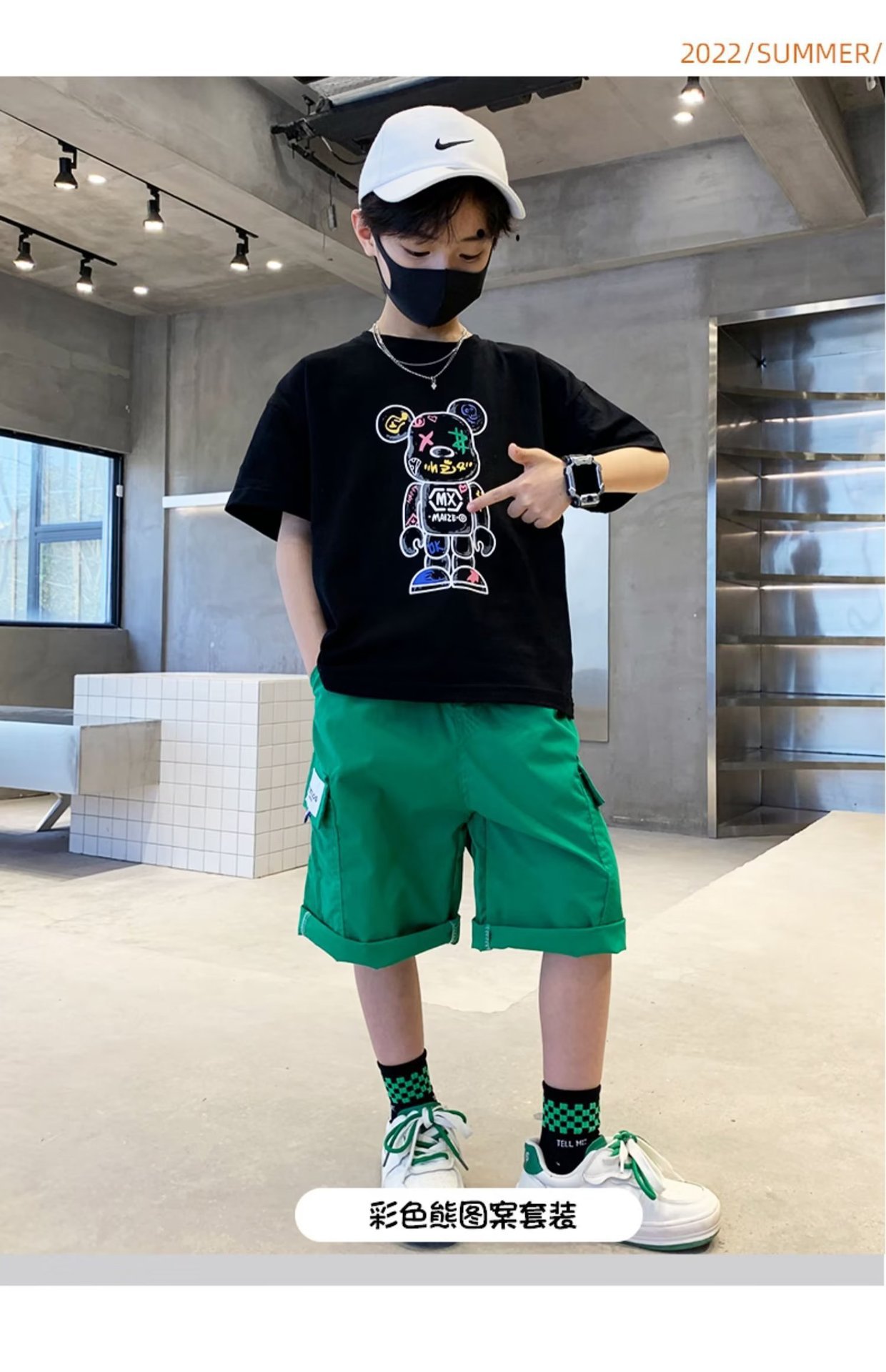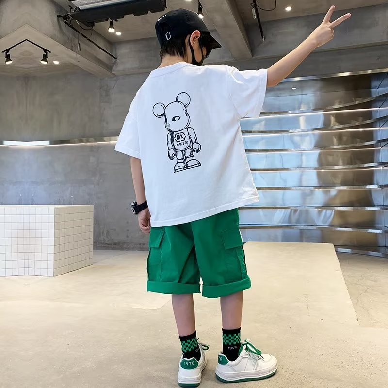 短袖白t恤儿童夏装洋气上衣半袖潮童装男孩帅气衣服男童卡通T跨境