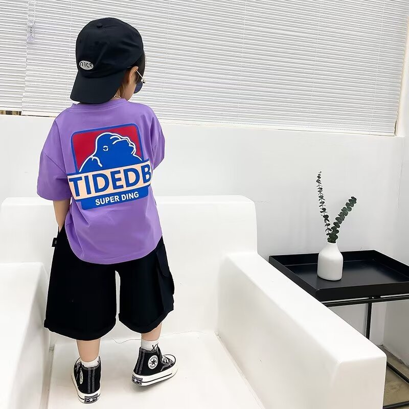 亚马逊童装字母短袖t恤夏季潮牌猩猩印花宽松男童半袖上衣潮