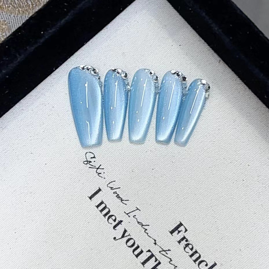 纯手工光疗穿戴甲 海岸线批发成品重复使用美甲贴片可拆卸猫