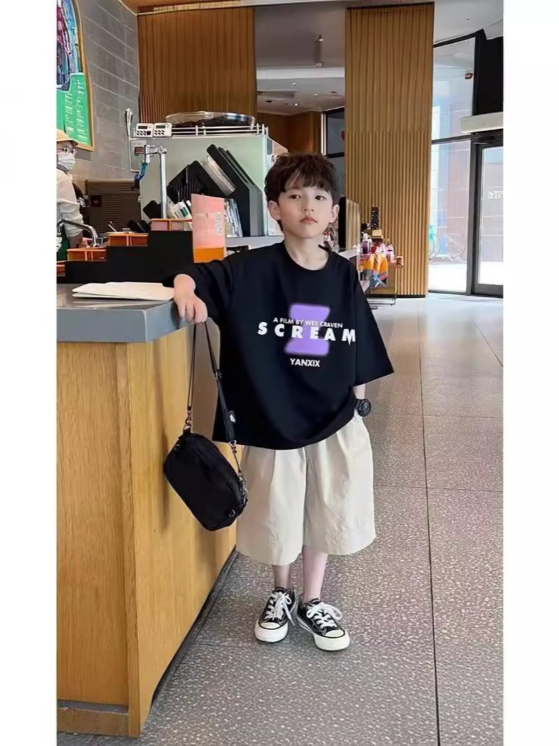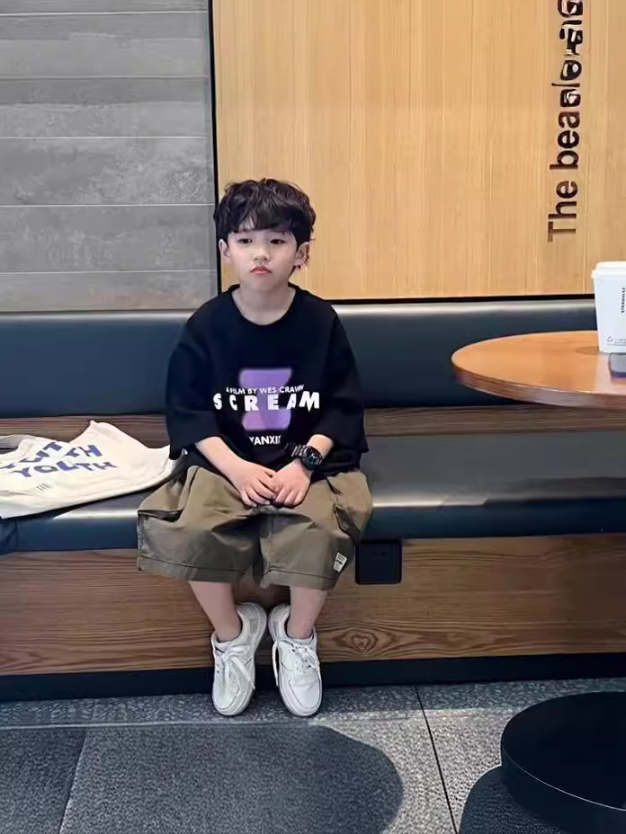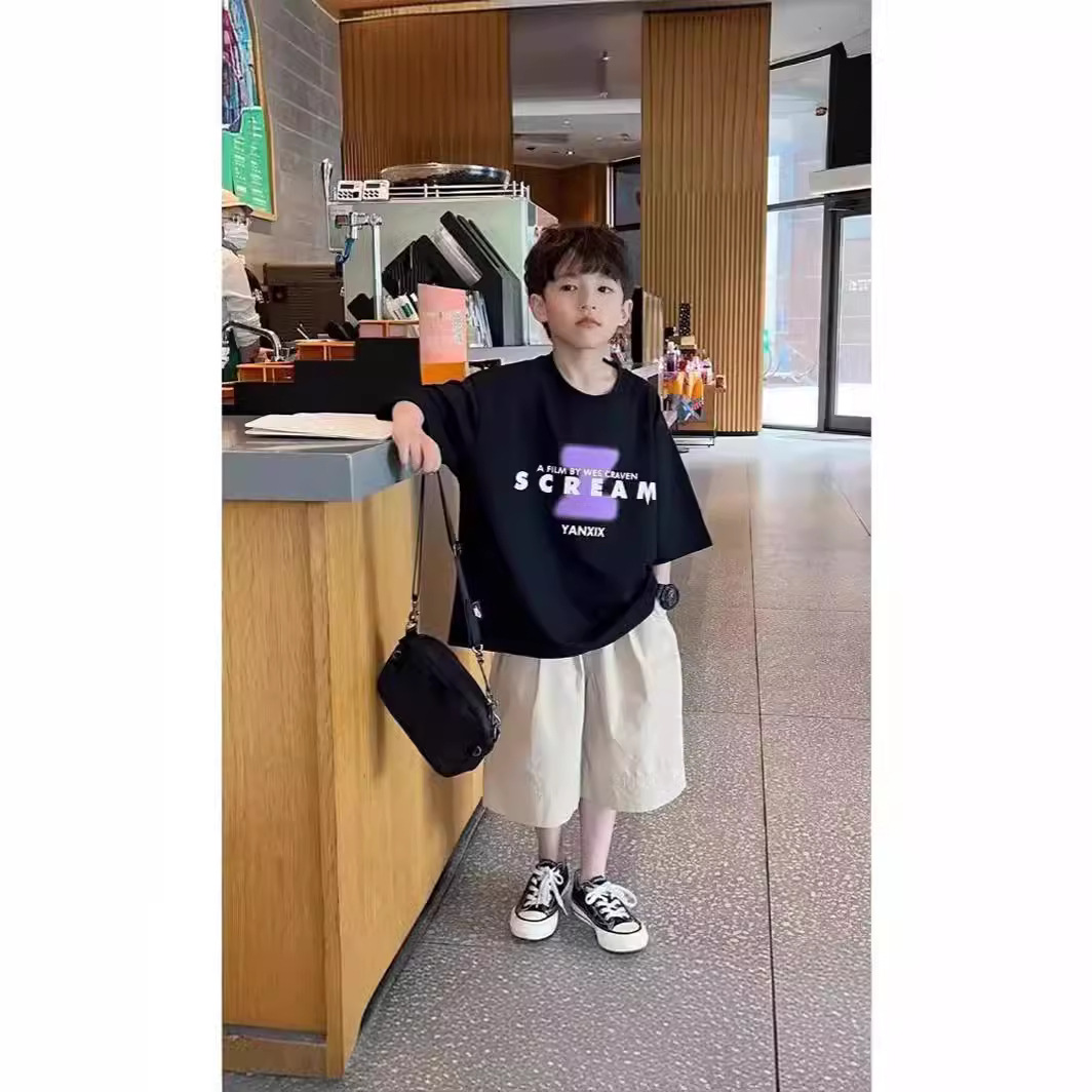 童装夏装新款短袖男童美式字母印花T恤儿童休闲棉质半袖上衣