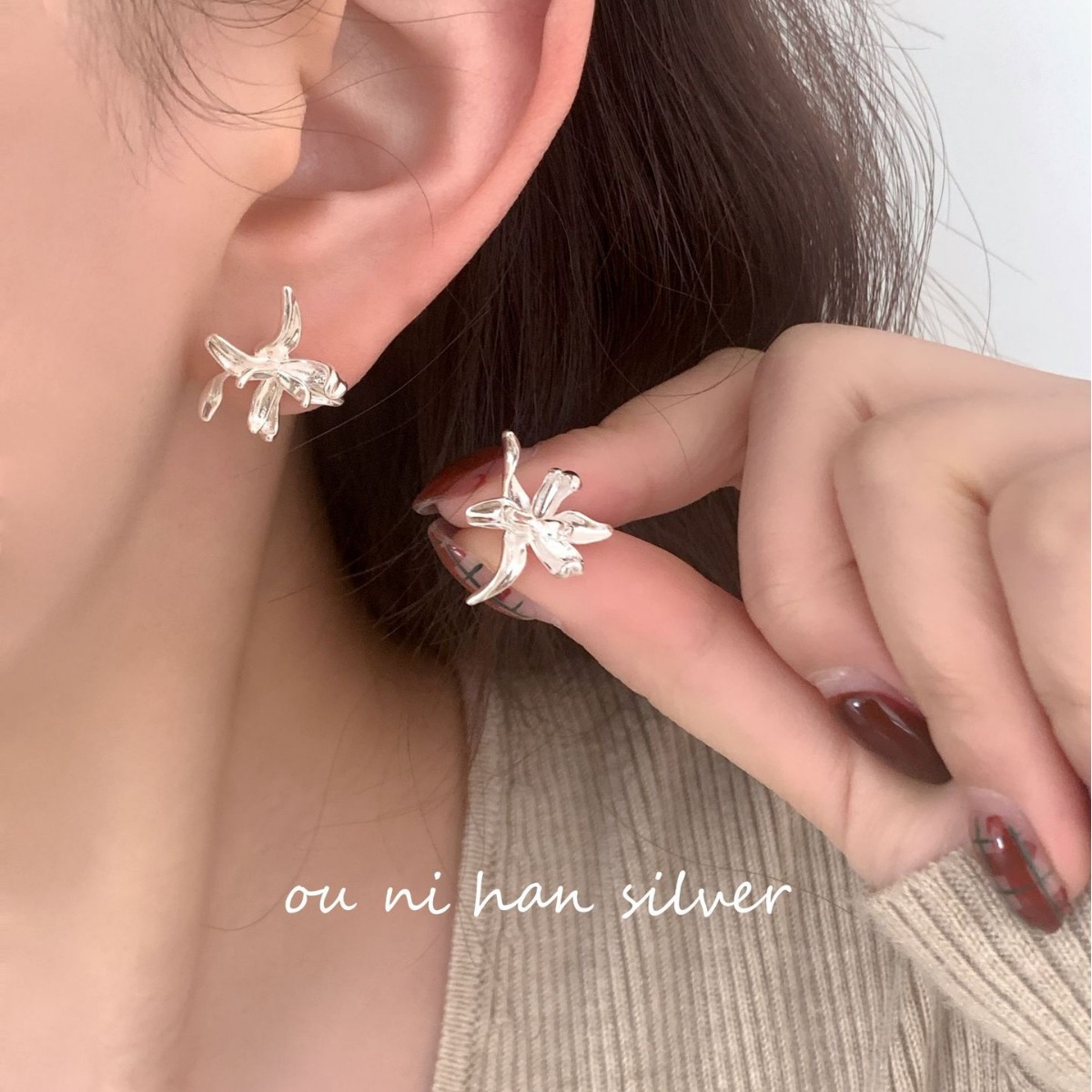 欧尼 S925纯银鸢尾花耳钉女ins风小众设计高级感气质花朵耳环耳饰