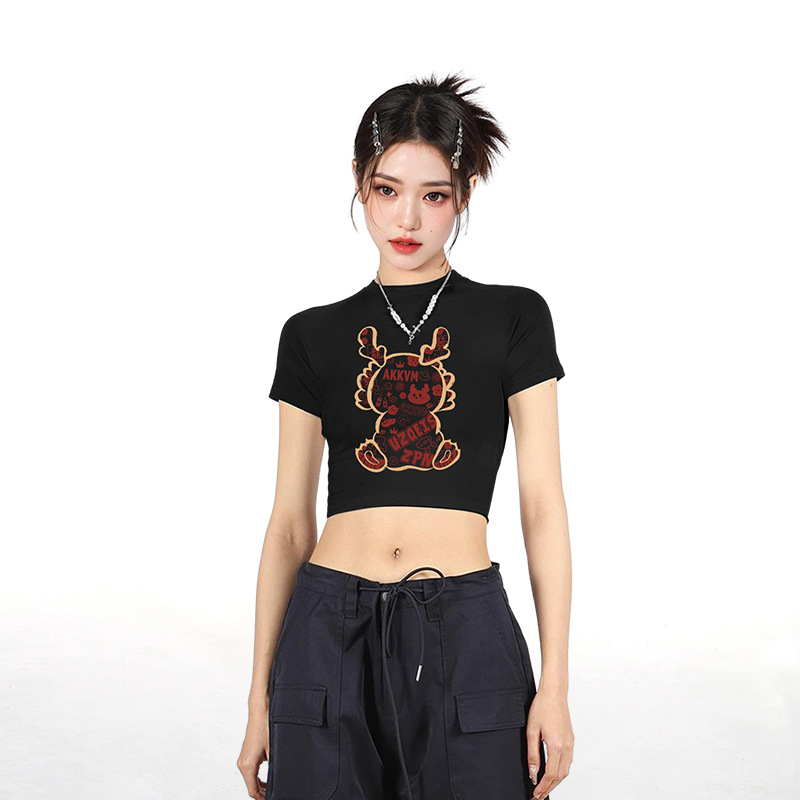 龙年短袖t恤女短款又甜又辣小众绝美潮【32支纯棉螺纹面料】