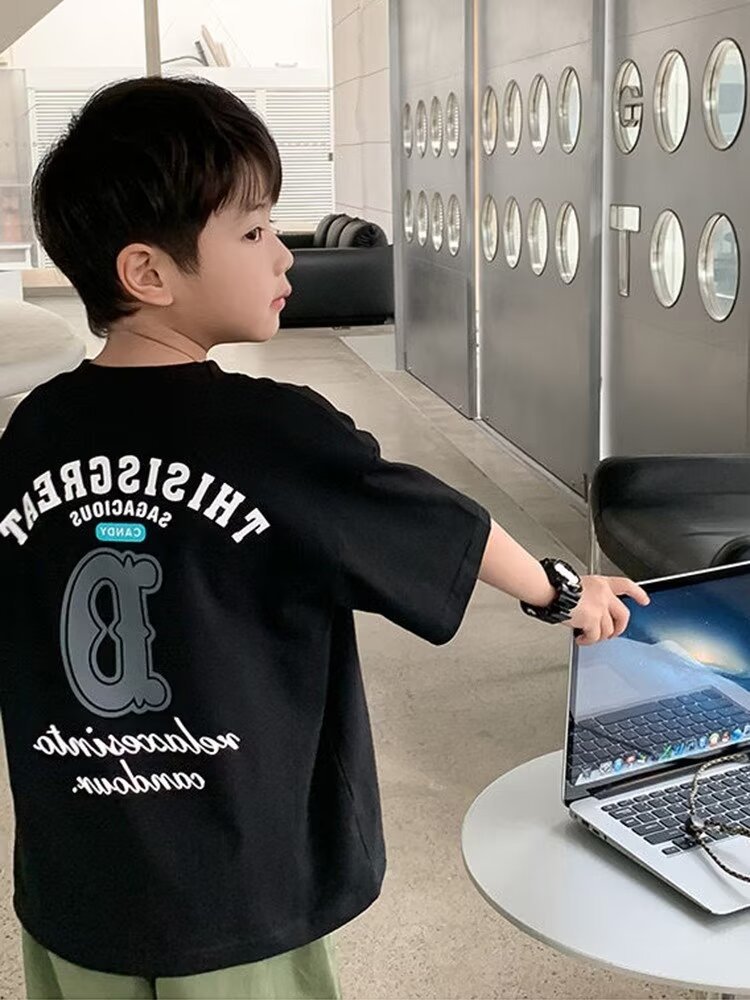 童装港风T恤年夏季儿童印花短袖T恤半袖中大童潮流上衣打底衫
