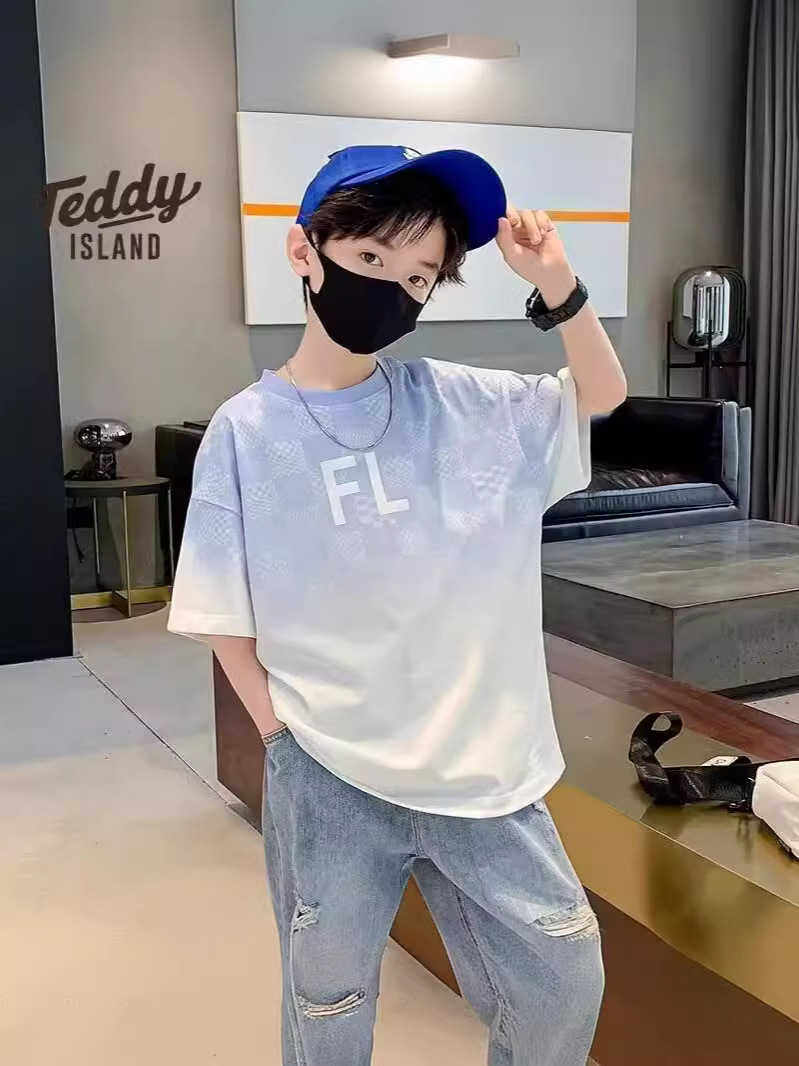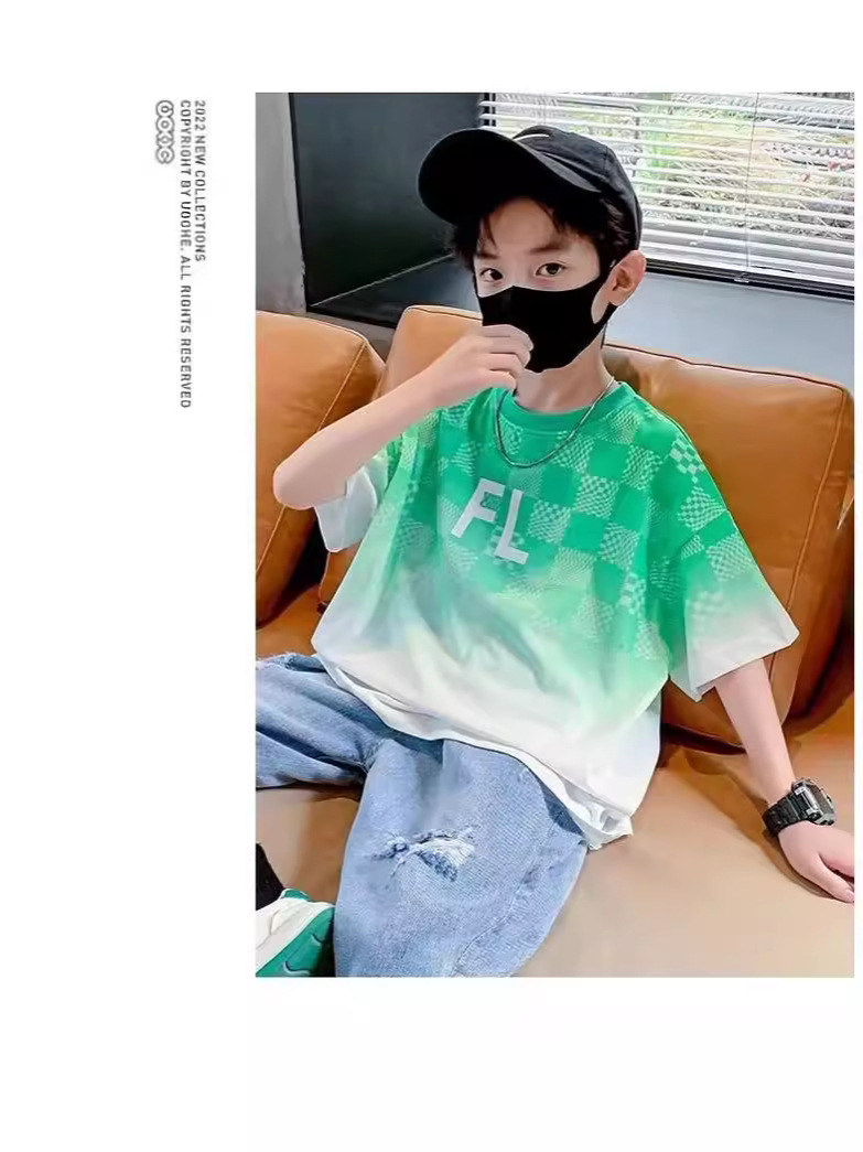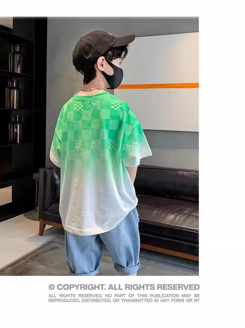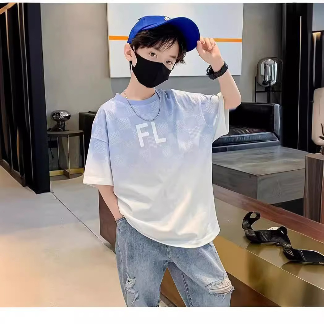 男童夏装短袖渐变t恤棉半袖新款儿童宽松运动上衣大童体恤衫