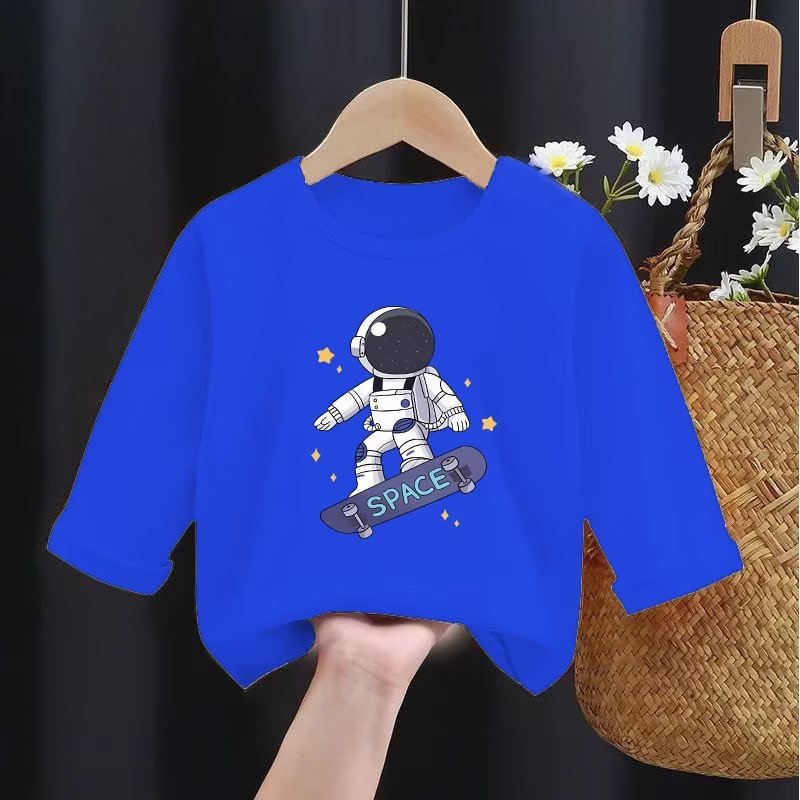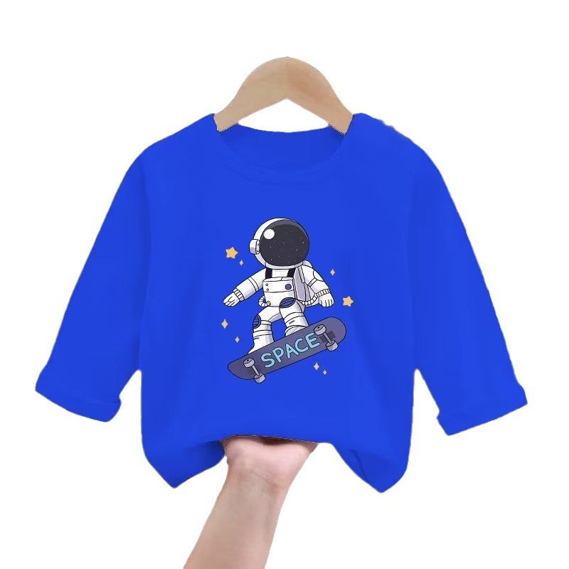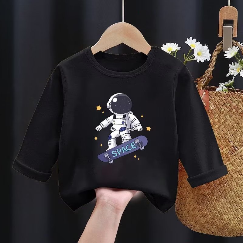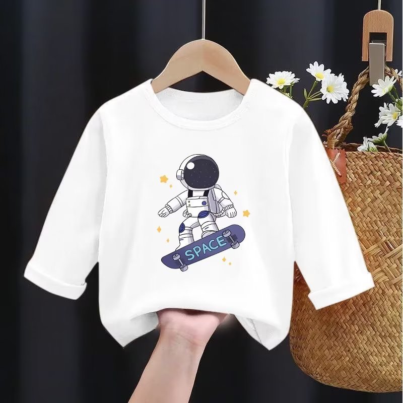 春秋装男童棉质长袖T恤儿童宝宝宇航员洋气上衣内搭打底衫潮