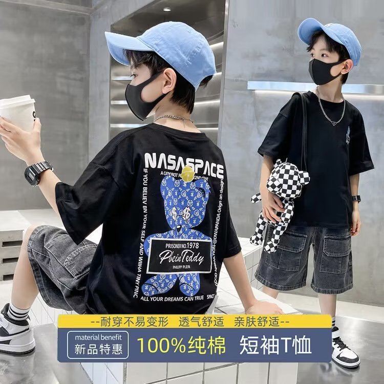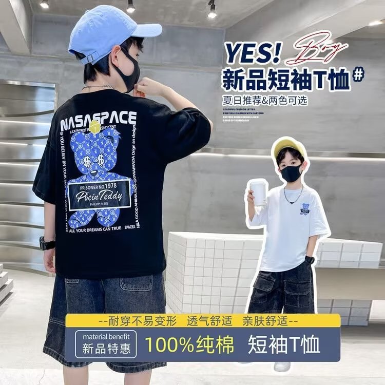 童装纯棉短袖新款中大童休闲卡通t恤夏季男童上衣潮t炸街跨境