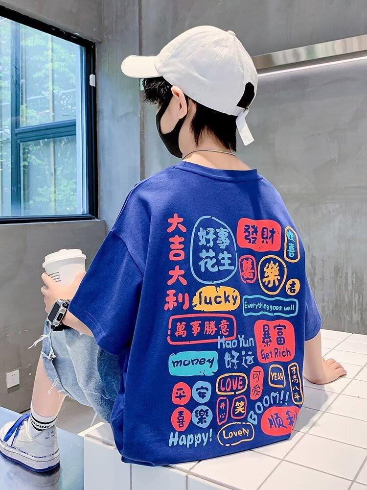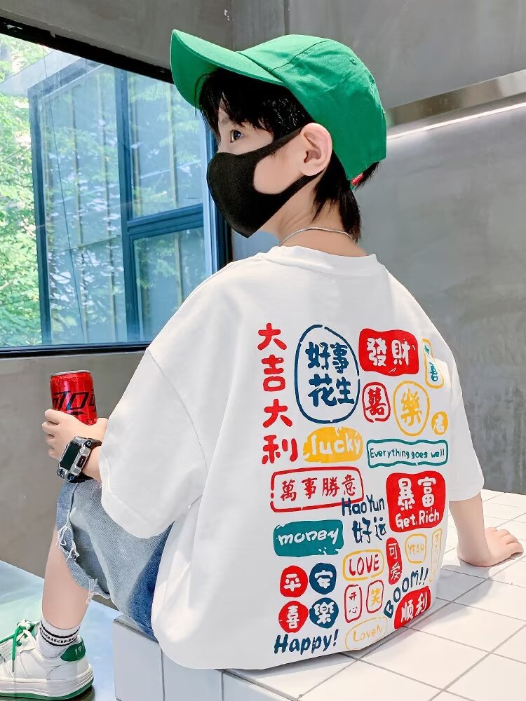 童装夏装短袖新款宽松运动卡通印花T恤男童夏季潮牌休闲上衣跨境