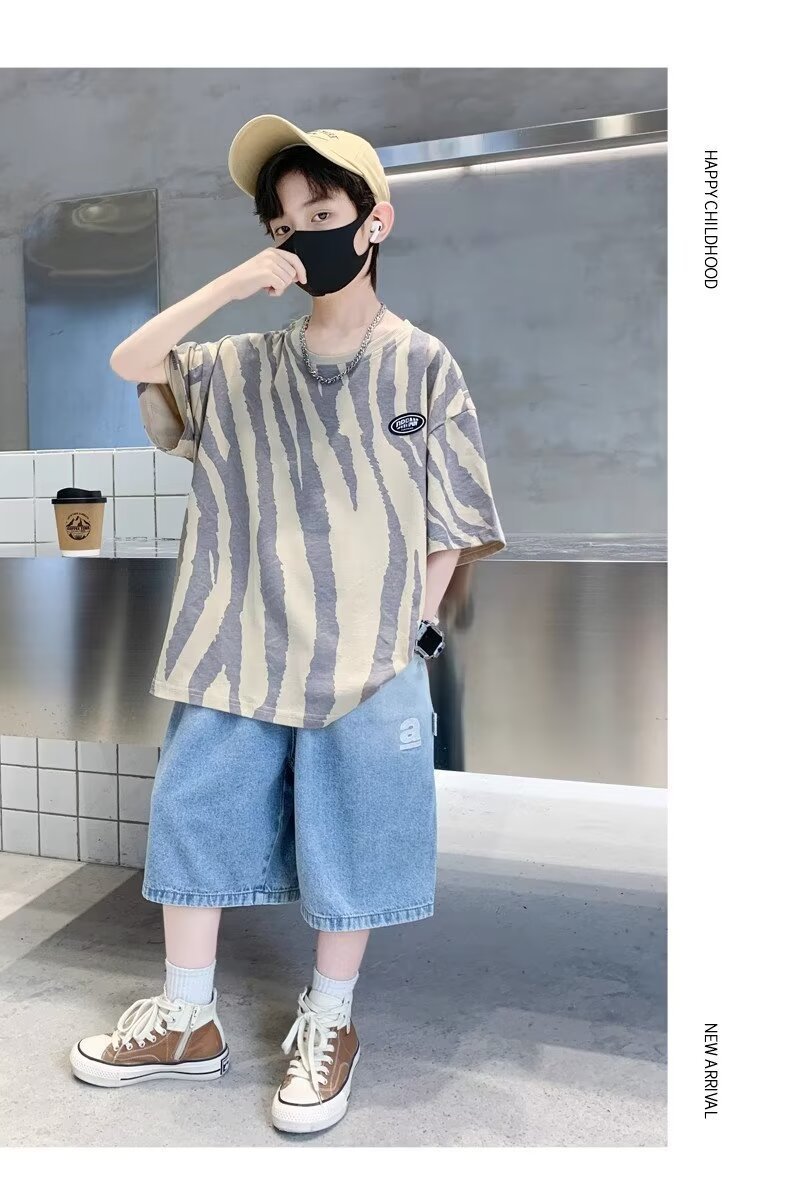 男童夏季短袖帅气童装满印卡通t袖半袖中大童炸街舒适上衣潮