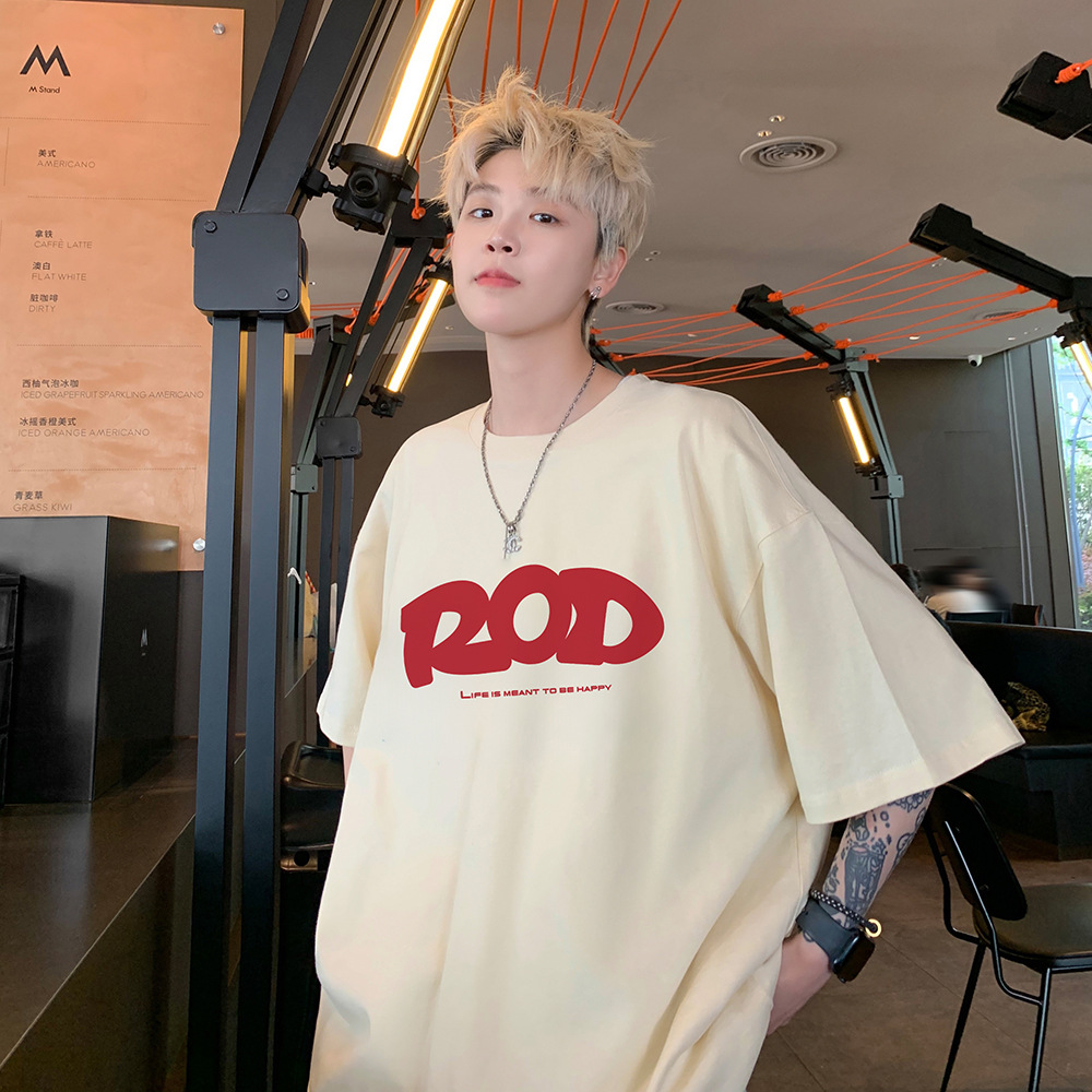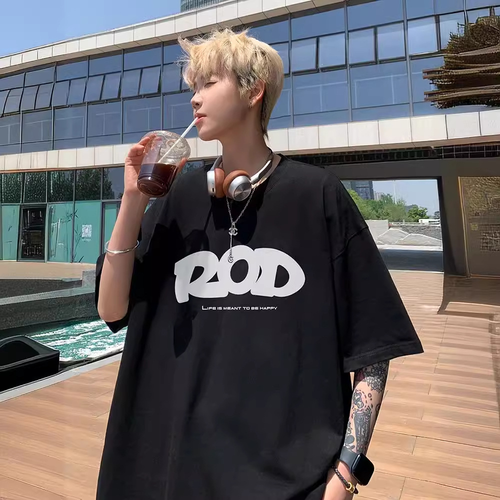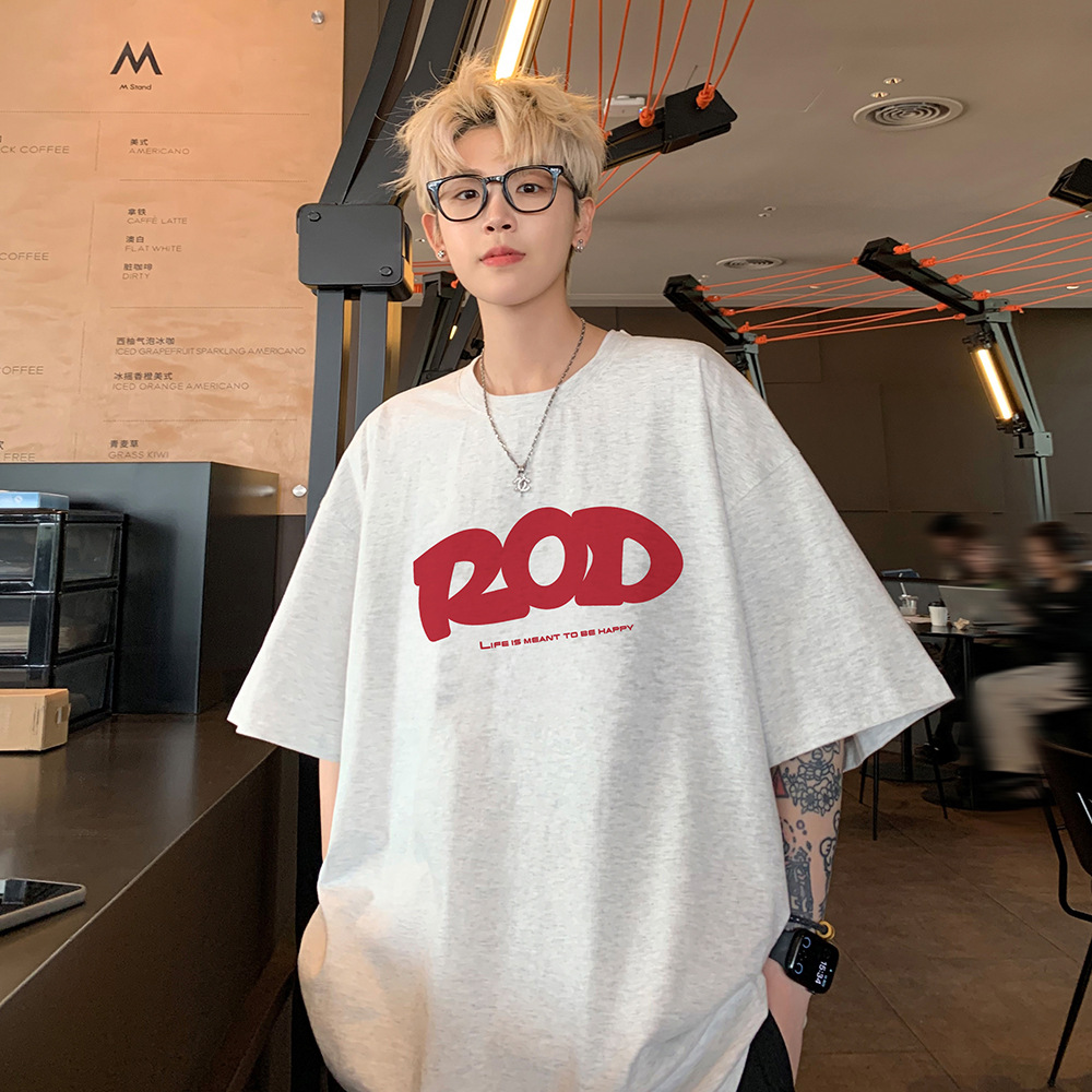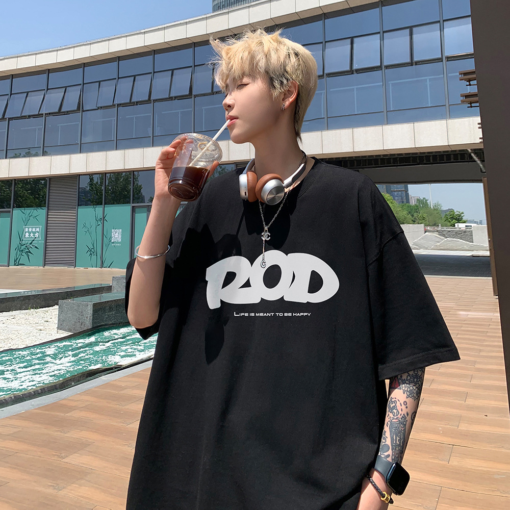 夏季短袖宽松t恤男士潮牌休闲半袖潮流体恤打底衫五分袖上衣