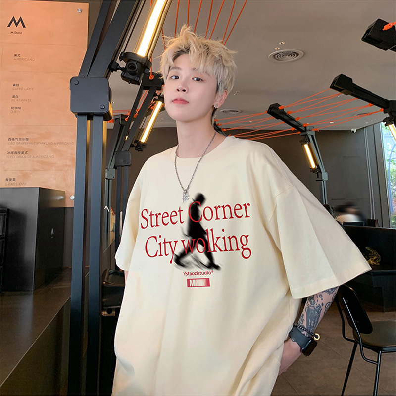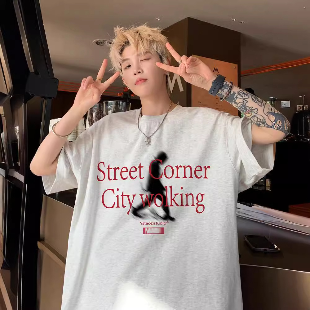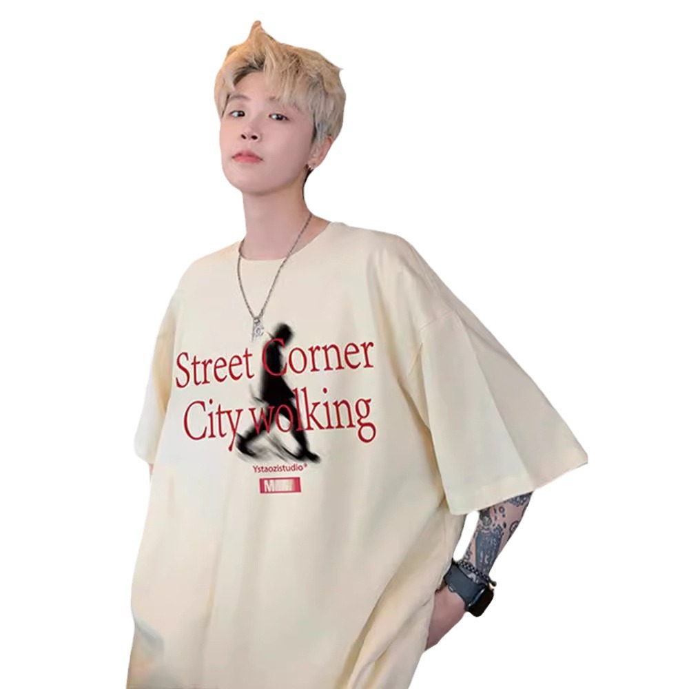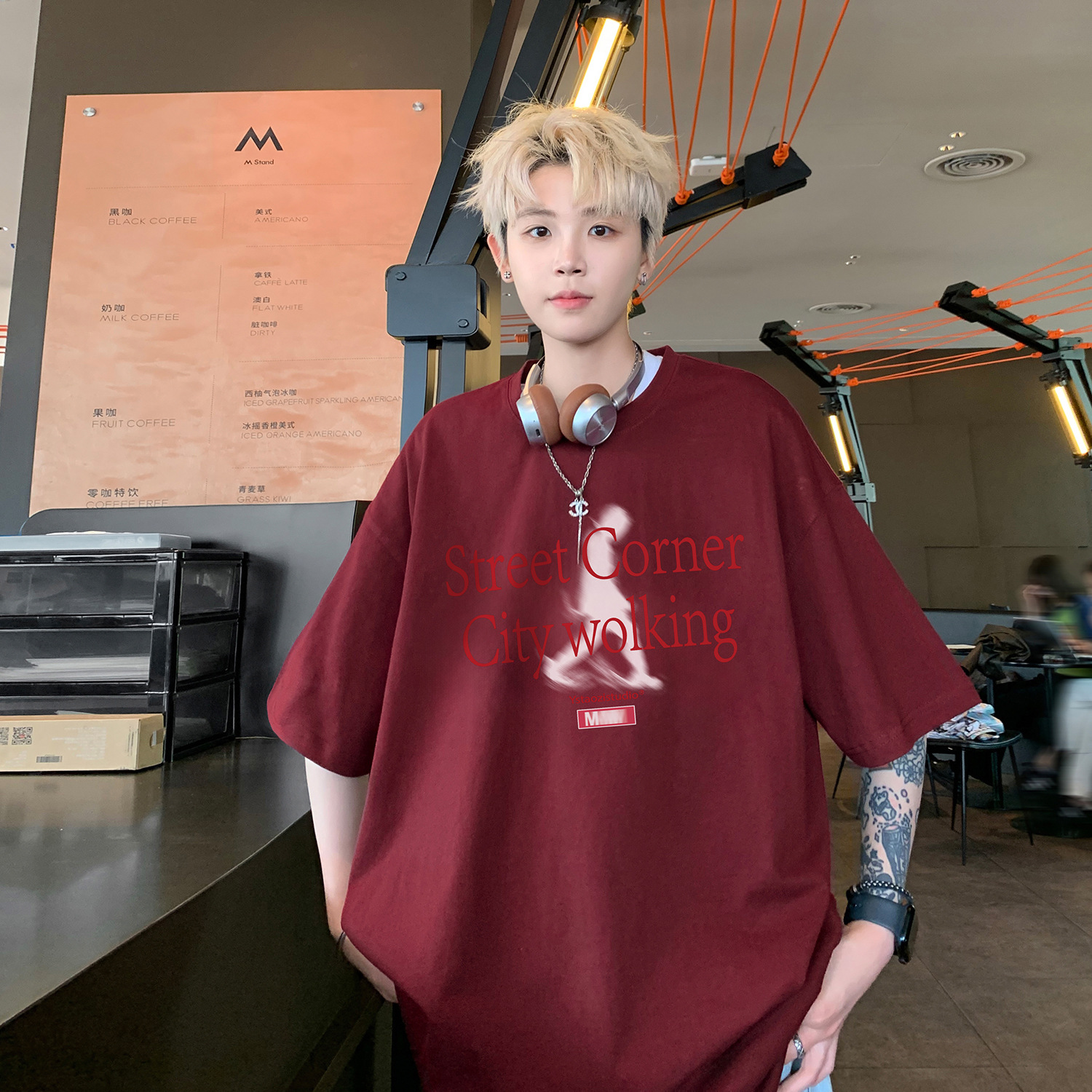 潮牌美式高街重磅短袖T恤男夏季设计感小众潮流宽松七分半袖衣服