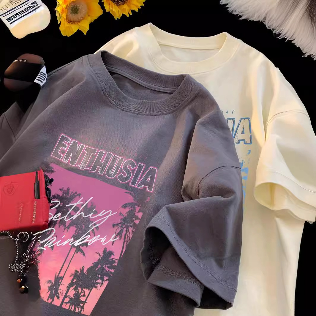 短袖t恤男士夏季新款日系复古潮牌重磅纯棉oversize宽松半袖体恤